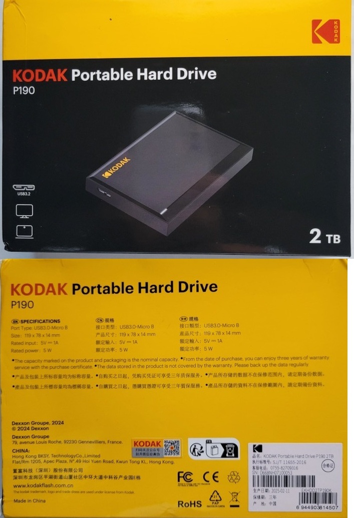 | 外装ブランド/型番 | KODAK Portable Hard Drive(P190) |