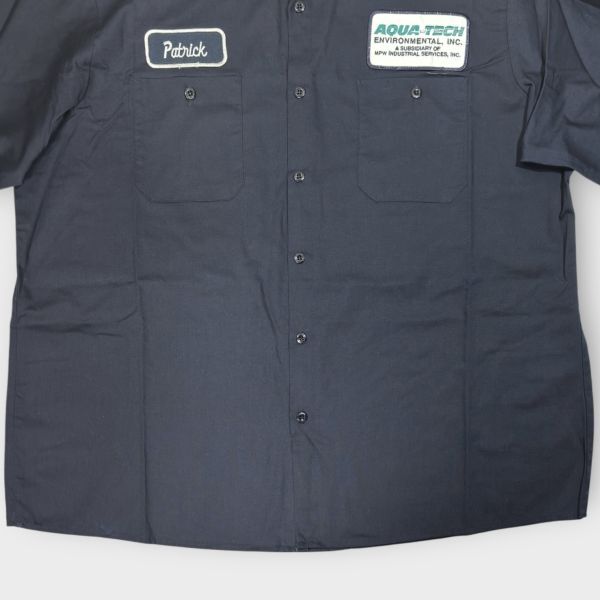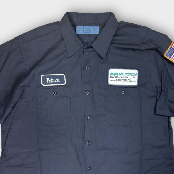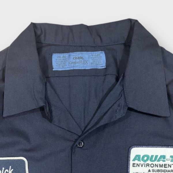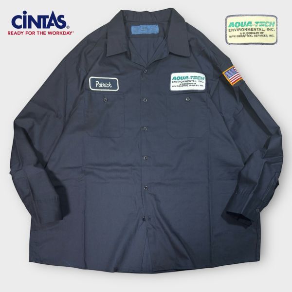 ★USA星条旗★AQUA-TEACロゴワッペン★CINTAS 長袖ワークシャツ size2XL アメリカ 古着 クリーニング プレス済み 2459