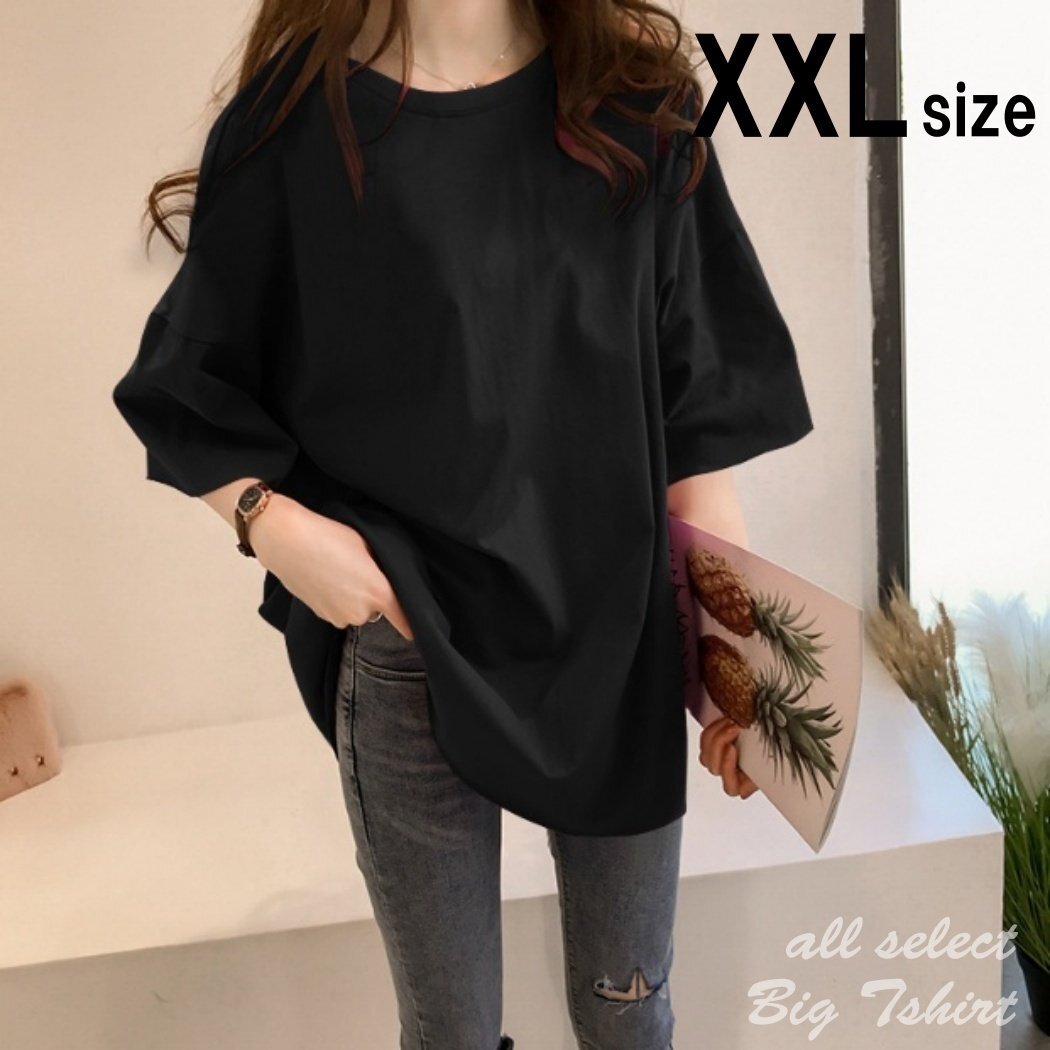 ブラック XXLサイズ ビッグ Tシャツ シンプル 大きめ 無地 着痩せ ゆったり 半袖 トップス 夏 ビッグT tシャツ カットソー 大きいサイズ