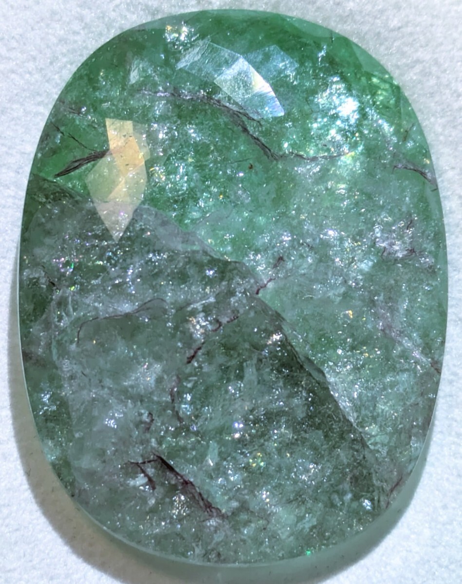 大粒なのでそれなりに小傷や内包物がございますが、爽やかなネオンカラーがとても美しいルースです。