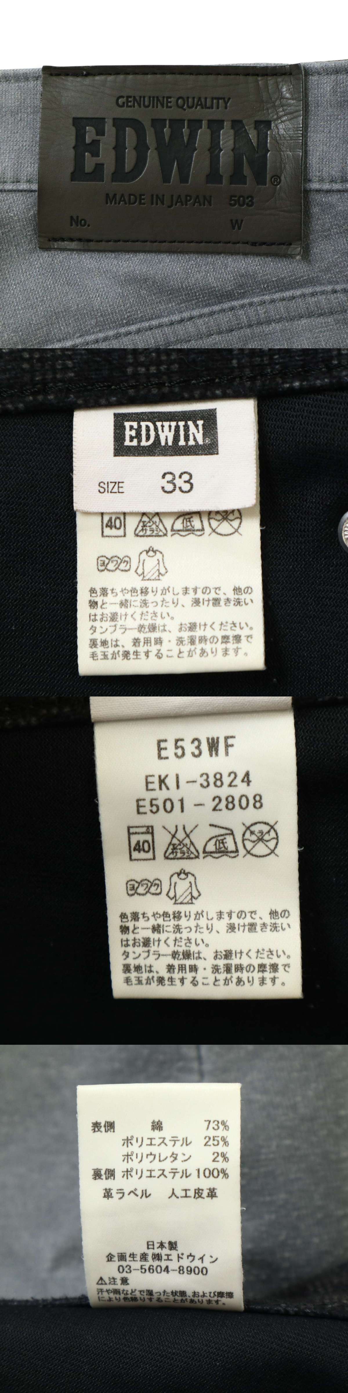 EDWIN エドウィン E53WF WILD FIRE★ 裏起毛 防風 防寒 ストレッチ デニム パンツ ジーンズ Sz.33 メンズ 日本製 バイク