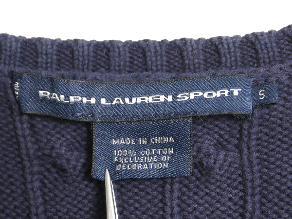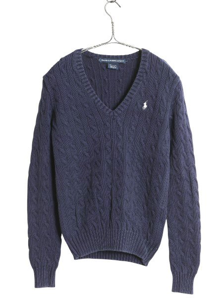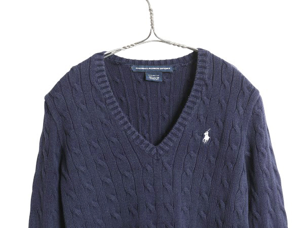 商品名 | ラルフローレン コットン ケーブル ニット セーター レディース S / ポロ スポーツ 長袖ニット Vネック ワンポイント シンプル きれいめ 紺 |