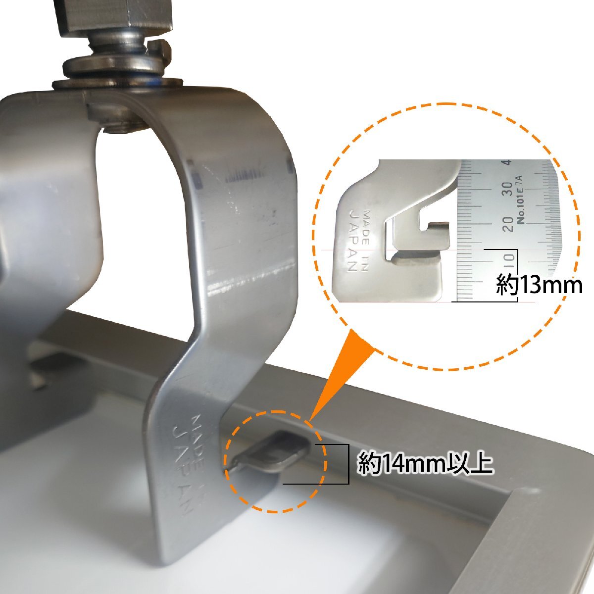 13mm以上の高さが無いと、固定金具を差し込めないためご注意ください。