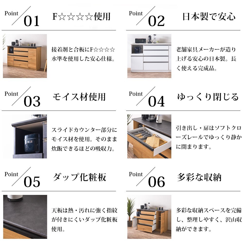 キッチンカウンター 完成品 140cm 間仕切り 引き出し 日本製 大川家具 おしゃれ モイス 奥行き48 ホワイト