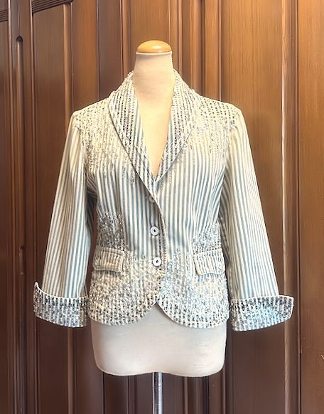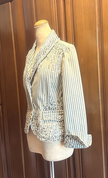 ◎ダメージ加工のストライプ・デニムに、たっぷりとスパンコールあしらった、ディーゼルらしいデザインです。生地もしっかりしており、長く着られますよ。いかがでしょう★