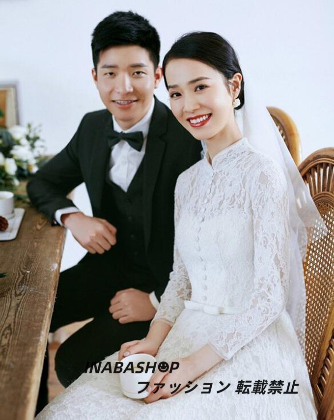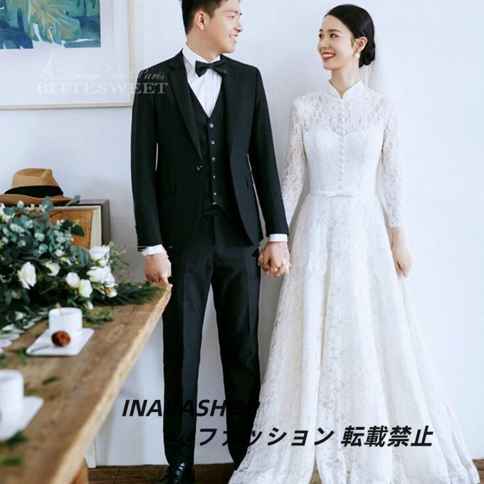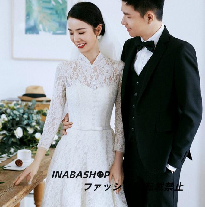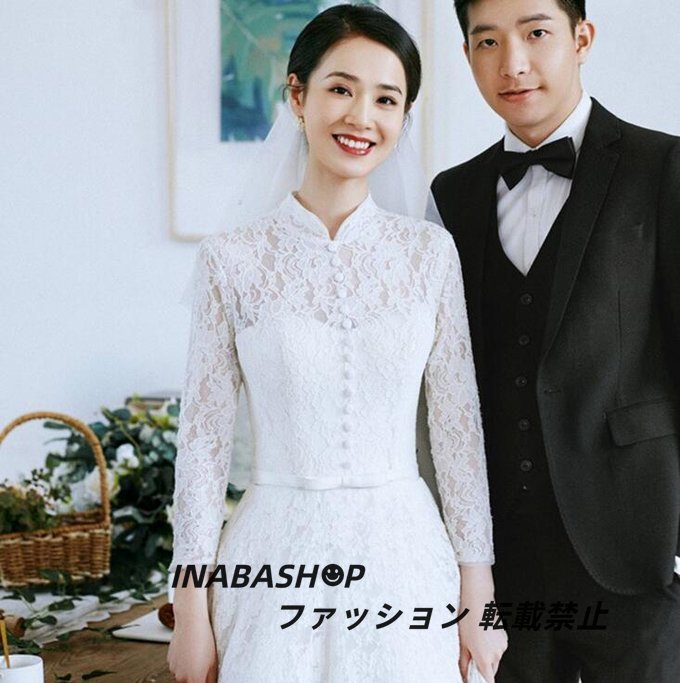 ウエディングドレス 長袖 ウェディングドレス パーティードレス スレンダーライン 床付きタイプ ファスナータイプ 結婚式 海外挙式ドレス