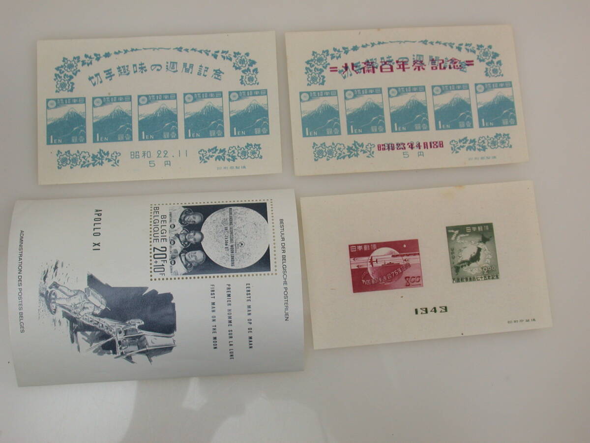夢462.未使用!古い切手 北斎百年祭記念 昭和23年 1円×5枚 1シート 切手 他3種 1969 アポロ11号 ニール・アームストロング船長