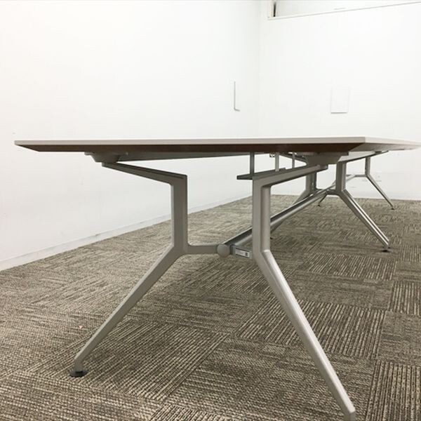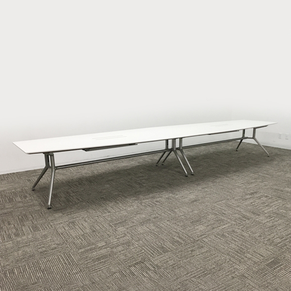 ■取り扱い番号 TM-835830B ■仕様 メーカー : イトーキ 製品名 : DDシリーズ 色素材 : ホワイトW 外寸 : 幅4800mm奥行き1200mm高さ700mm ランク : Bランク ■特徴 配線口:2ヶ所 天板:メラミン化粧板、エッジ:オレフィン系樹脂 脚:アルミダイキャスト、スチールパイプ、アジャスター付 イトーキ製、DDシリーズの120°脚ボート天板タイプの大型会議テーブル。 アルミダイキャスト美しさを生かしたシャープ&モダンなデザインでエグゼクティブのコミュニケーションの場としてもふさわしいハイグレードな商品です。 天板中央部に配線機能を持つOA対応テーブルで、ネットワークを活用したミーティングに対応します。 ※画像のチェアは付属しません。 ※こちらの商品は解体してありますので、お客様にて組立をお願いいたします。 ※組立に必要な工具:六角(工具は付属していません) |