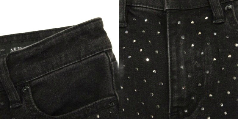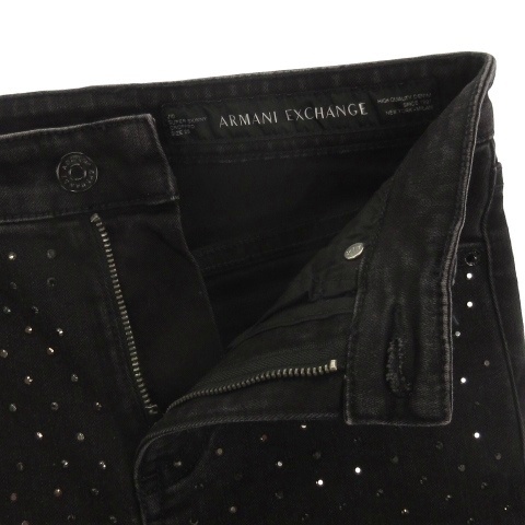 アルマーニエクスチェンジ A/X ARMANI EXCHANGE デニム パンツ ジーンズ スキニー ラインストーン ストレッチ 黒 ブラック 25 ■ECT レディース