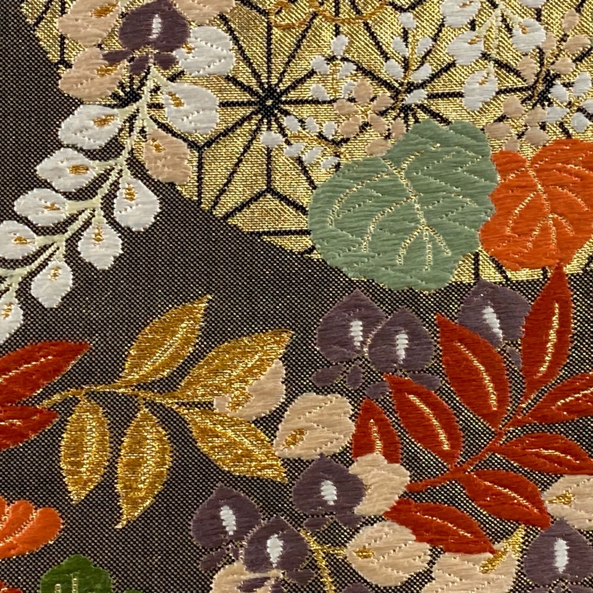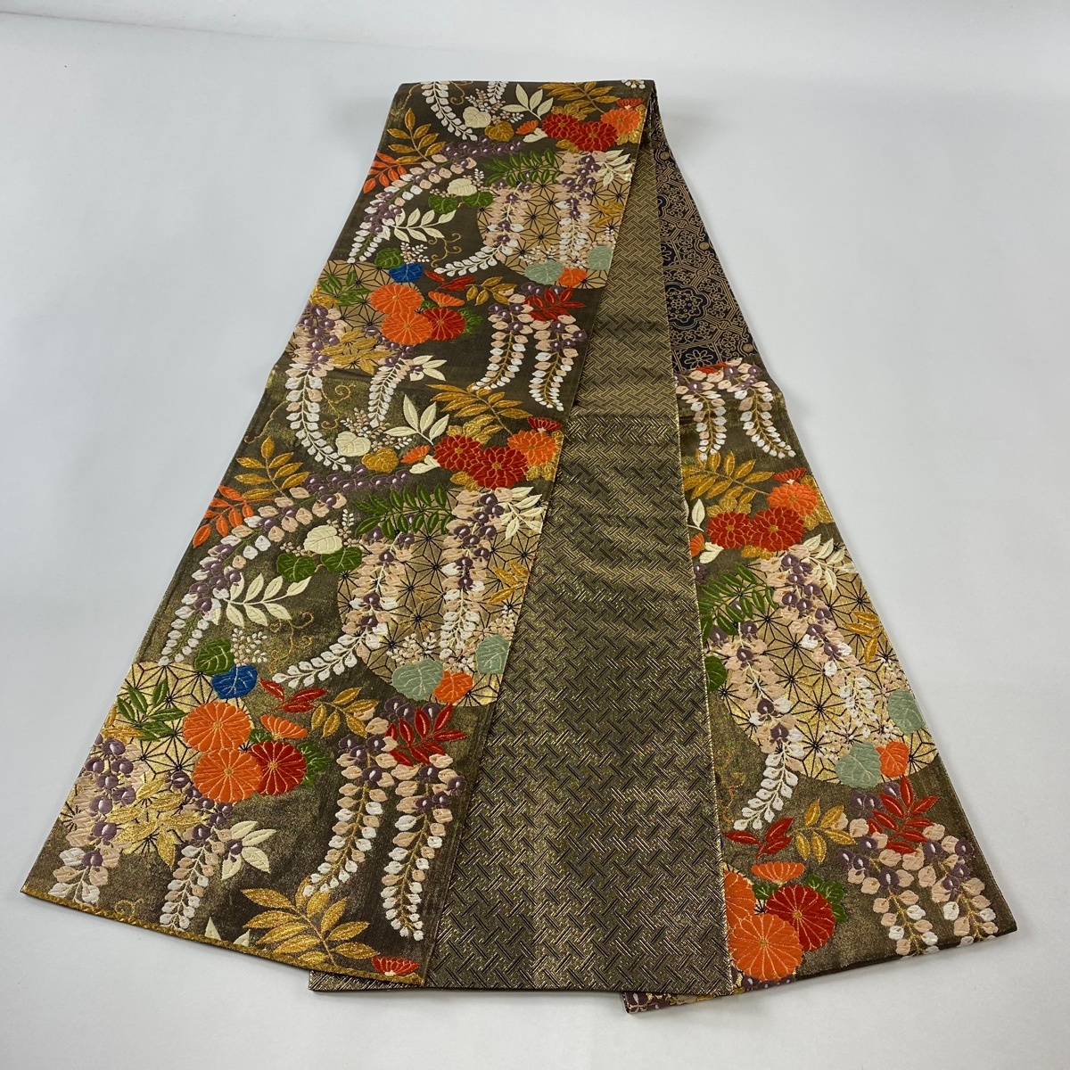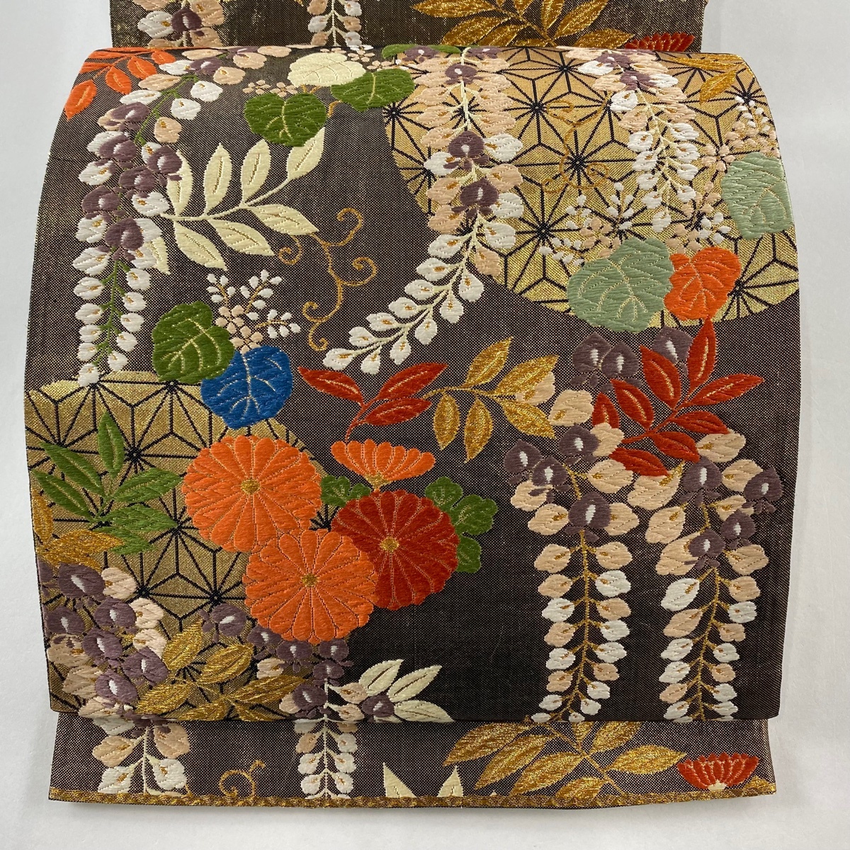 | 袋帯 美品 秀品 麻の葉 藤 唐織 金糸 金茶 六通 正絹 【中古】 |