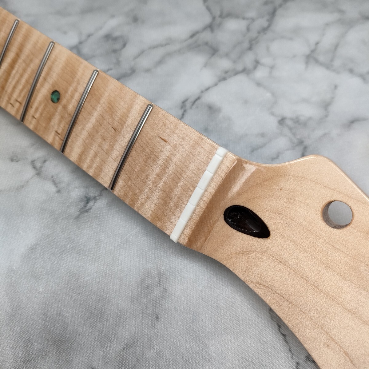 新品テレキャス用 フレイムメイプル ギターネック 22F グロスフィニッシュ 虎目