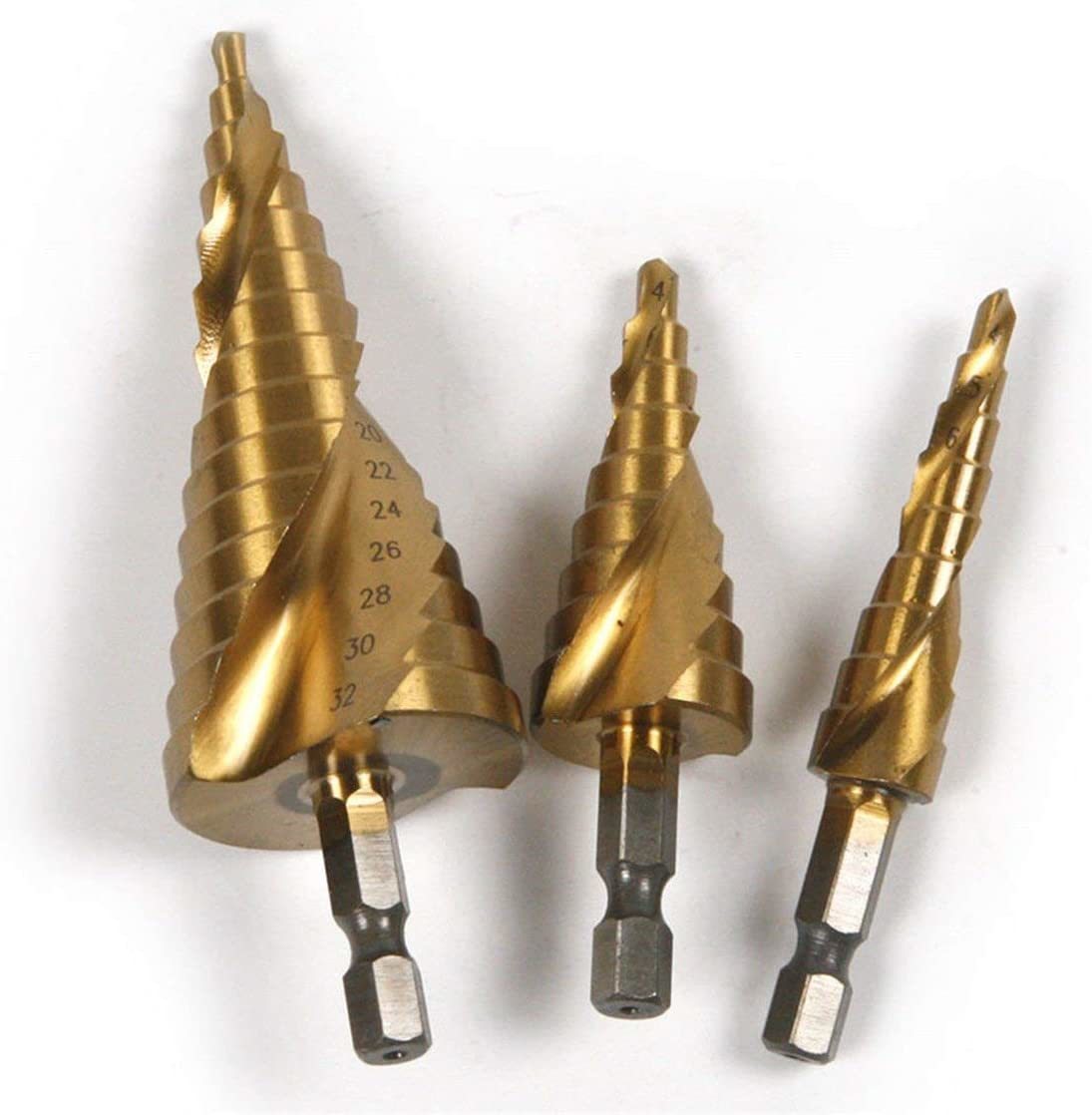 ステップドリル 3本セット スパイラル 六角軸 チタンコーティング ミリ(mm)表示 HSS鋼 ステップドリル 穴あけ  4-32mm対応 B0BRCS5QMC B09PMXSY3D