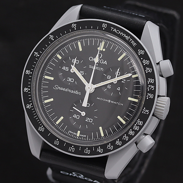 1円 稼働 保/箱付 オメガ スウォッチコラボ スピードマスター S033M100 QZ クロノグラフ ブラック文字盤 メンズ腕時計 0244200 8YBT KTS