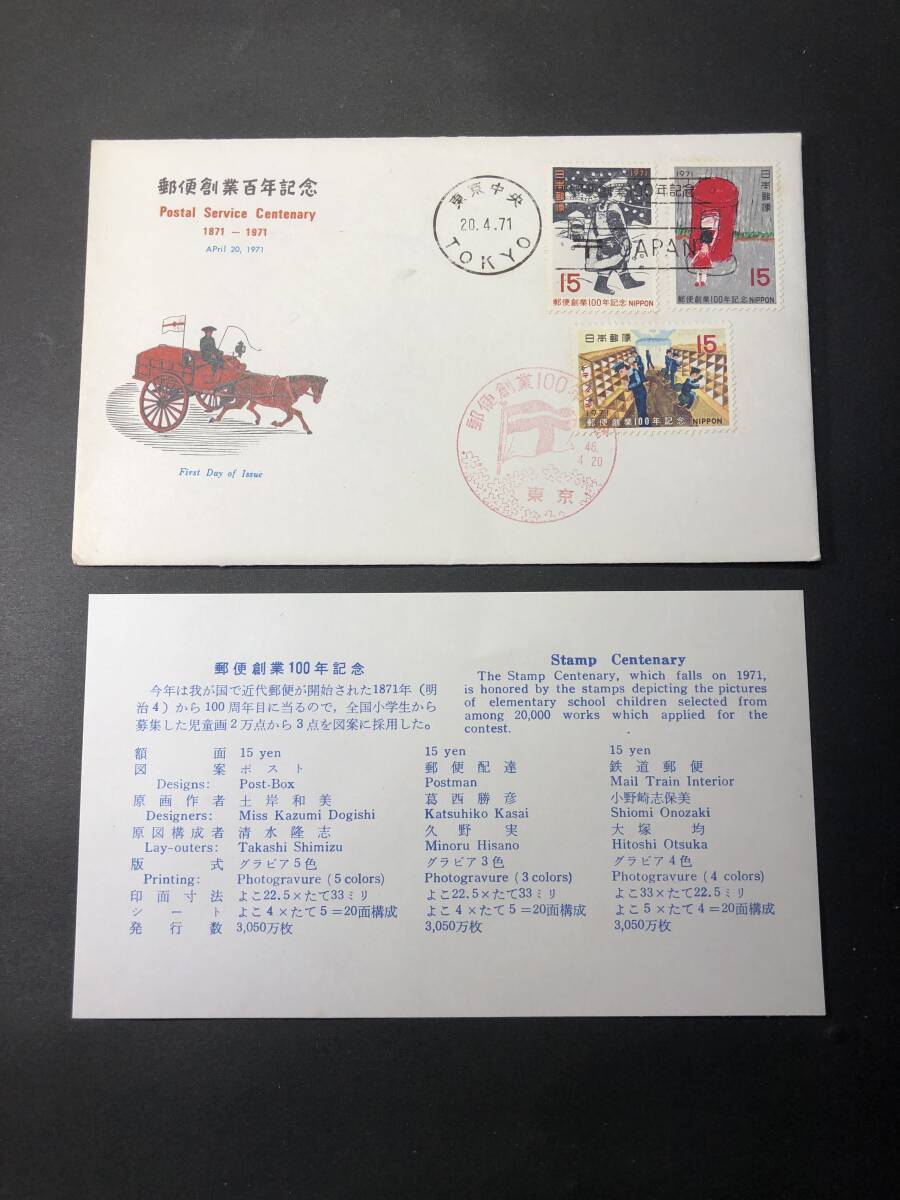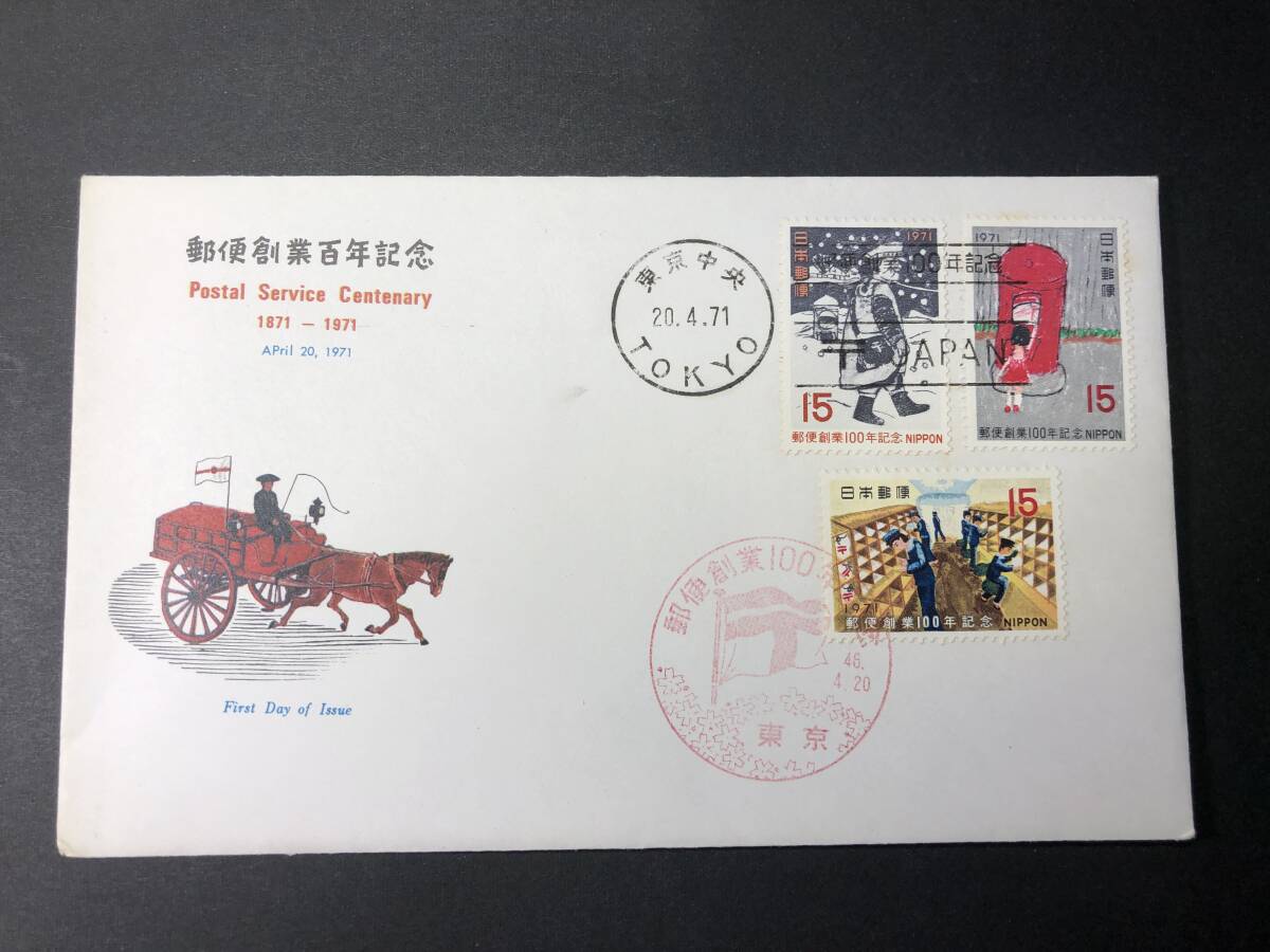 ★FDC 初日カバー★郵便創業100年記念 「ポスト」/「郵便配達」/「鉄道郵便」 3種張 NCC版 昭和46年発行 Y8502