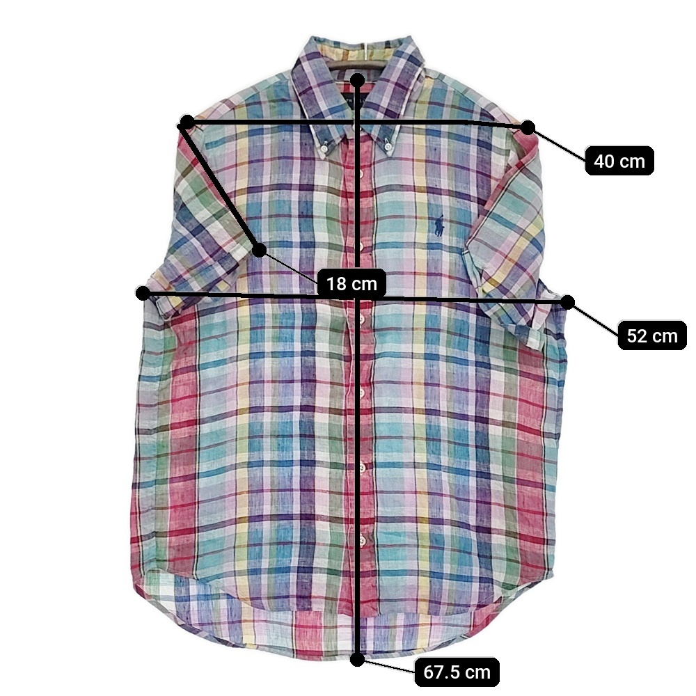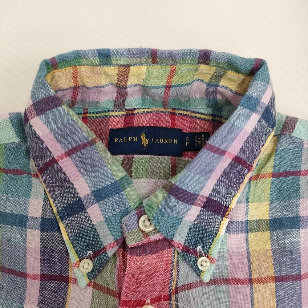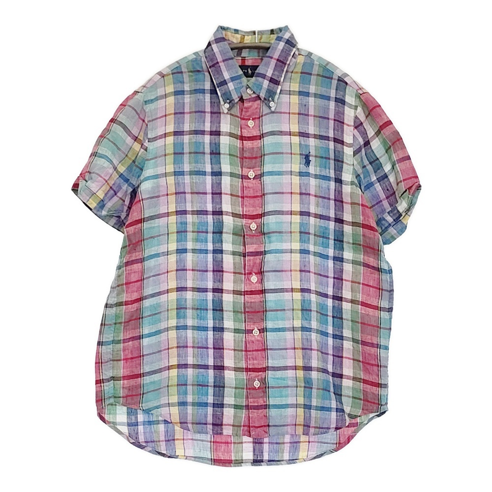 | アイテム | 半袖シャツ リネン マドラスチェック ボタンダウンシャツ サイズS インド製 |