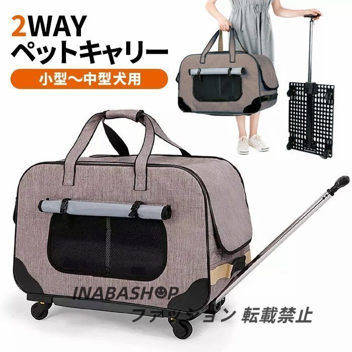 ペットキャリーバッグ 2way 折りたたみ キャスター付き キャリーバッグ 犬 猫 小型犬 中型犬 ペットキャリーカート(グレー)
