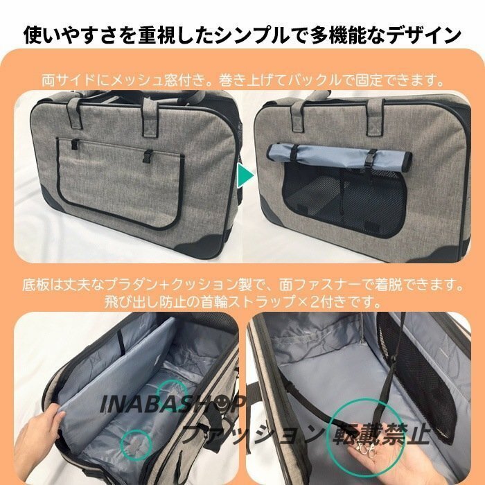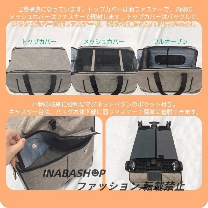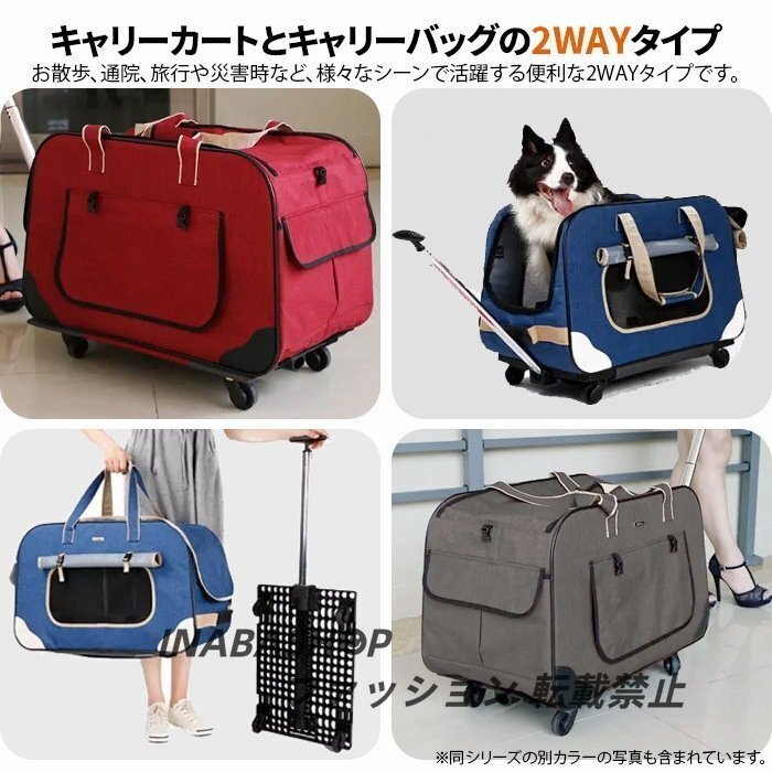 折り畳みタイプでキャリーバッグとキャリーカートとしての2WAY使用可能です。外出の際、簡単に車に乗せることができ、ペットと一緒の外出にとても役に立ちます。