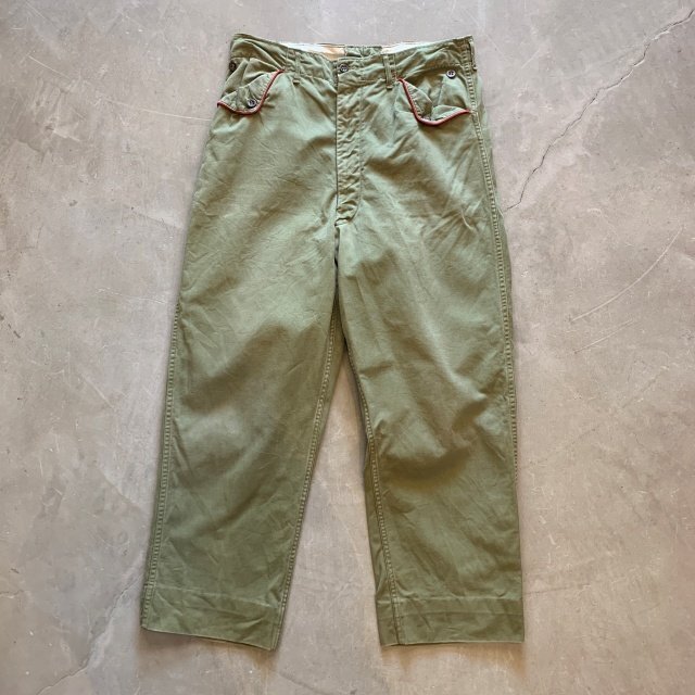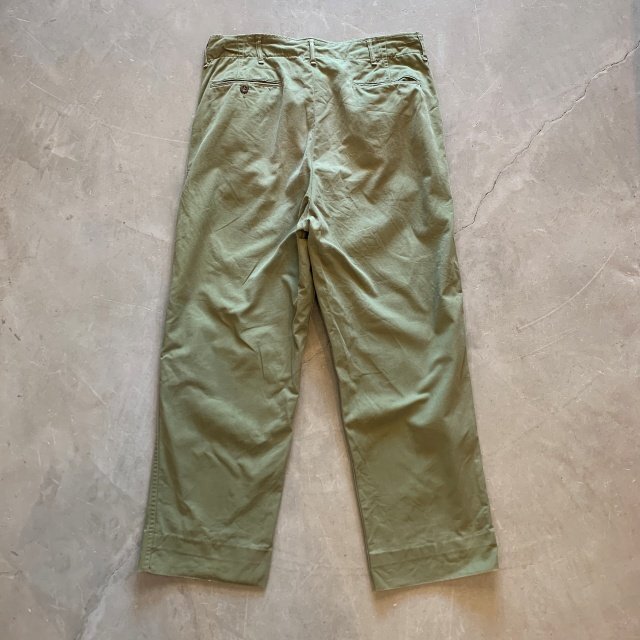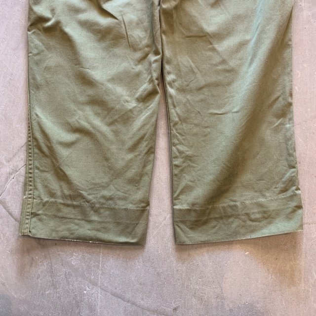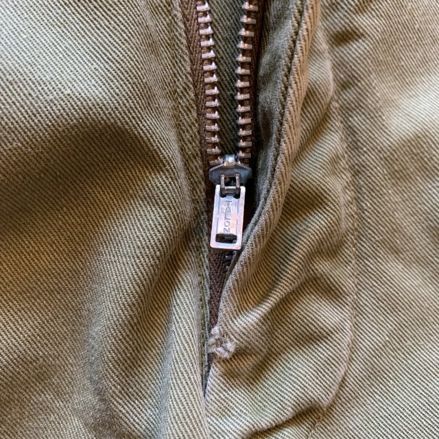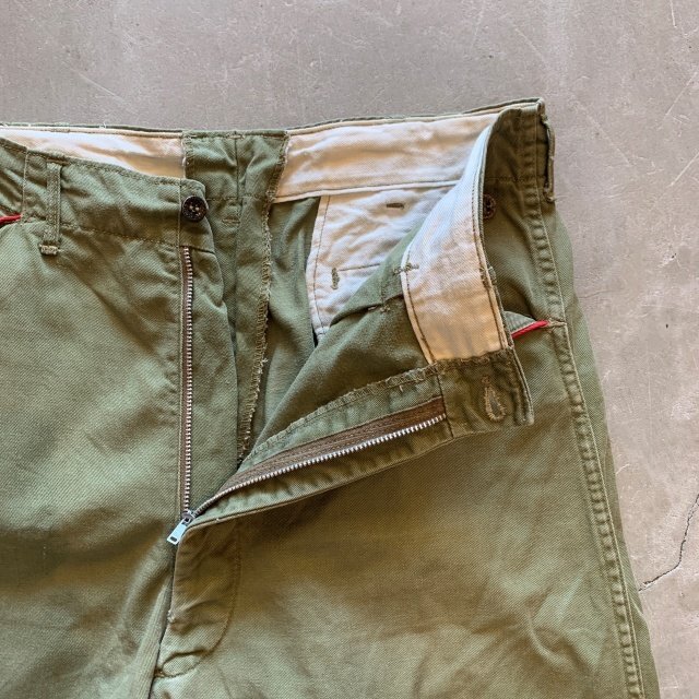 ★商品状態★ ・着用感があり、裾に若干の擦れダメージが見られます。レングス短めになります。 ・古着慣れされている方でしたら問題なく着用していただける程度かと思います。 ・TALONジップ ★素材★ コットン ★配色★ 淡い緑 オリーブ系 ★サイズ表記★ W30~31インチ相当 ・実寸を参考にして下さい。 ★実寸サイズ★ ウエスト 39㎝ 股下 64㎝ 股上 33㎝ 腿幅 32㎝ 裾幅 22㎝ ・平置きにての採寸となります。 ・若干の誤差はご了承ください。 |