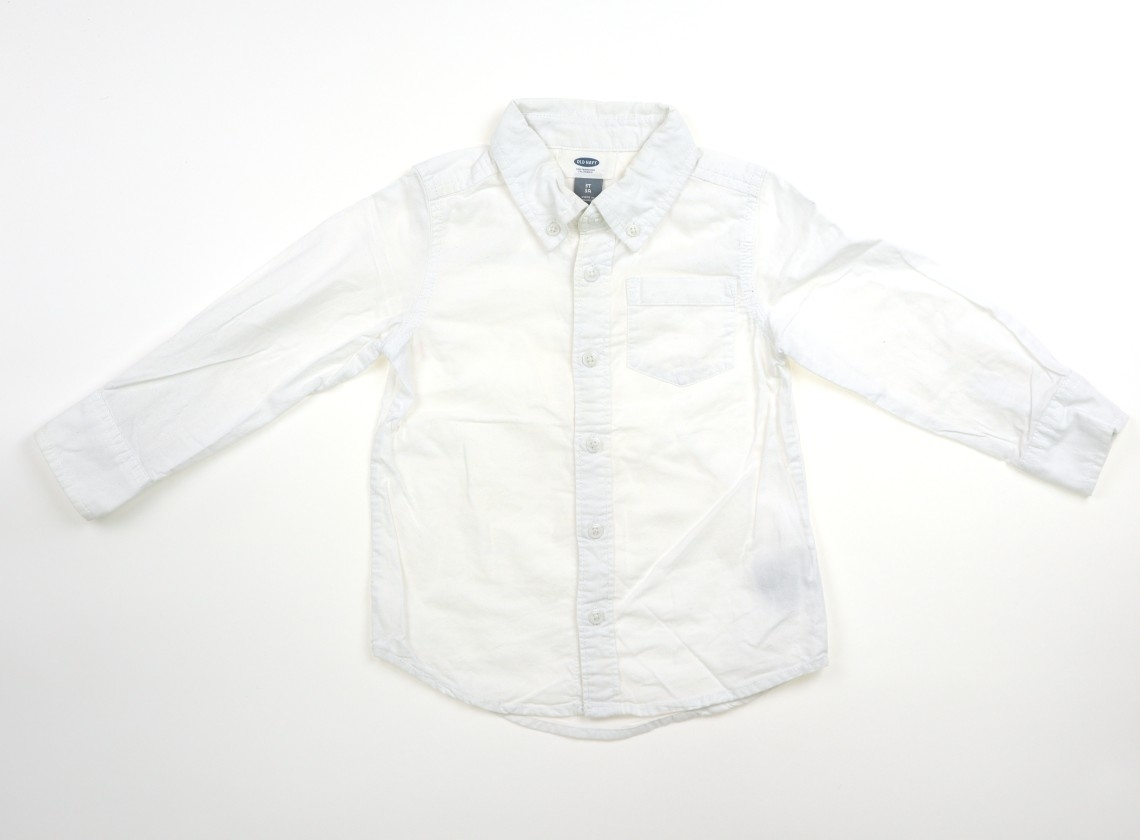 実際のサイズ表記は3T。オックスフォードシャツ。衿周りと袖、首元に黄ばみあり。