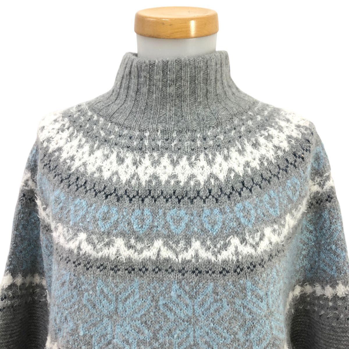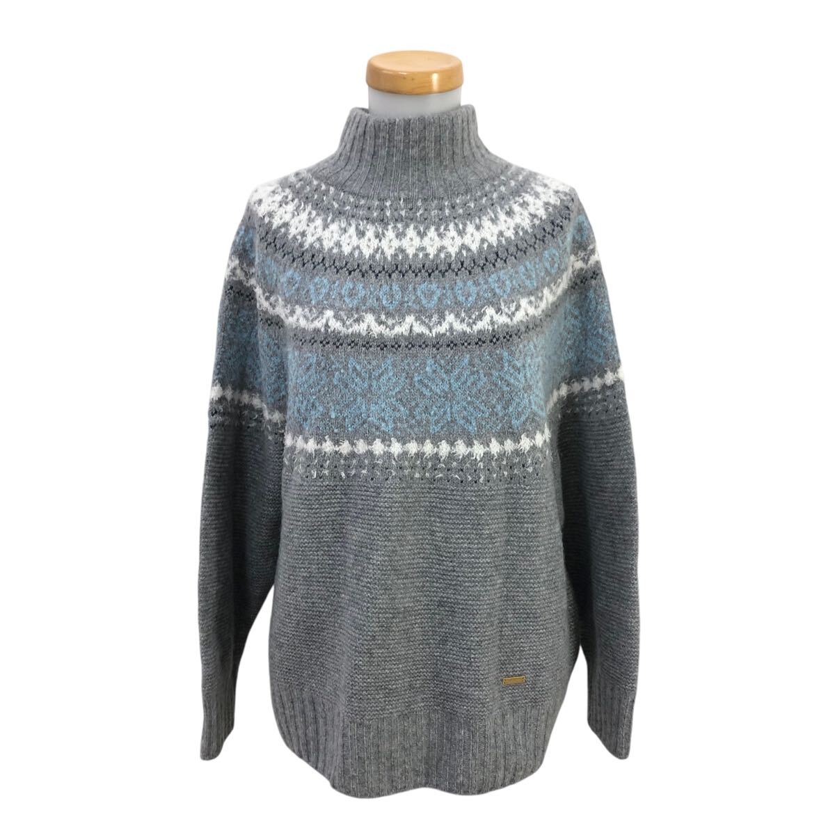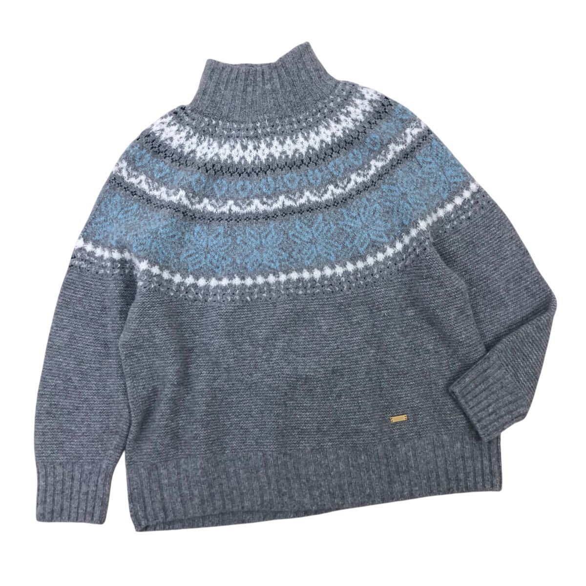 8m643-87 BLUE LABEL CRESTBRIDGE ブルー レーベルクリストブリッジ ノルディック 柄 モックネック ニット セーター トップス グレー 38