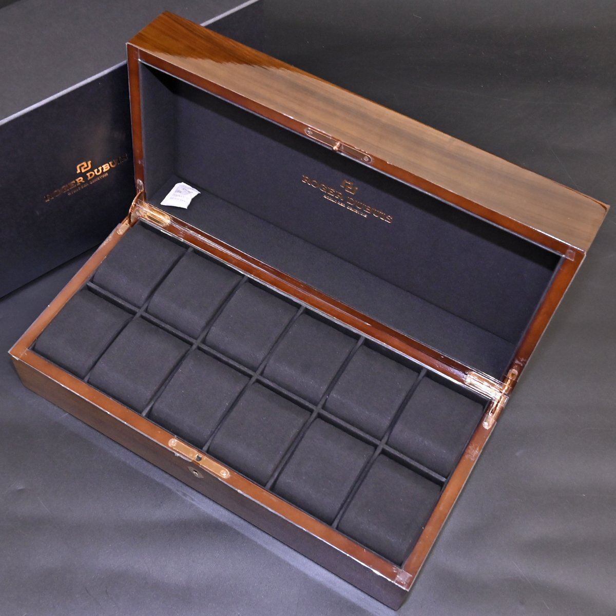 ロジェ・デュブイの腕時計12本収納用 キーロック ウッド ウォッチトランクです。 12本の腕時計を完全に保護してくれる重厚且つラグジュアリーな逸品。 市場にも全く出てこないモデルなのでお探しの方も非常に多いかと思います。 |