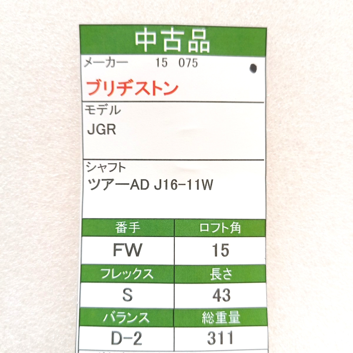 【即決価格】【FW】ブリヂストン/JGR/15度/ツアーB J16−11W/FLEX S/カバー無し
