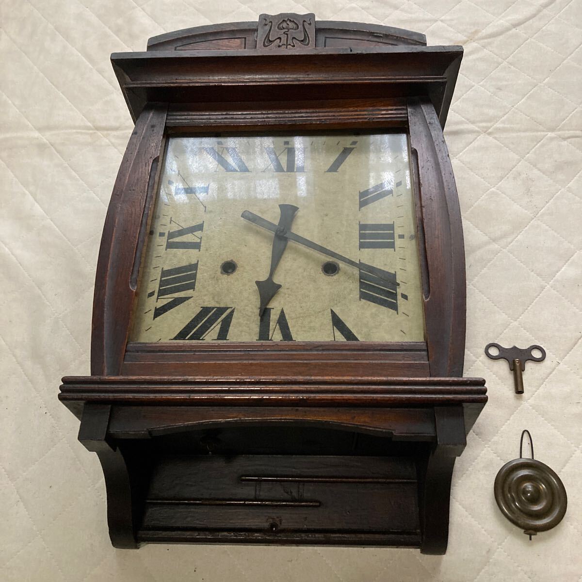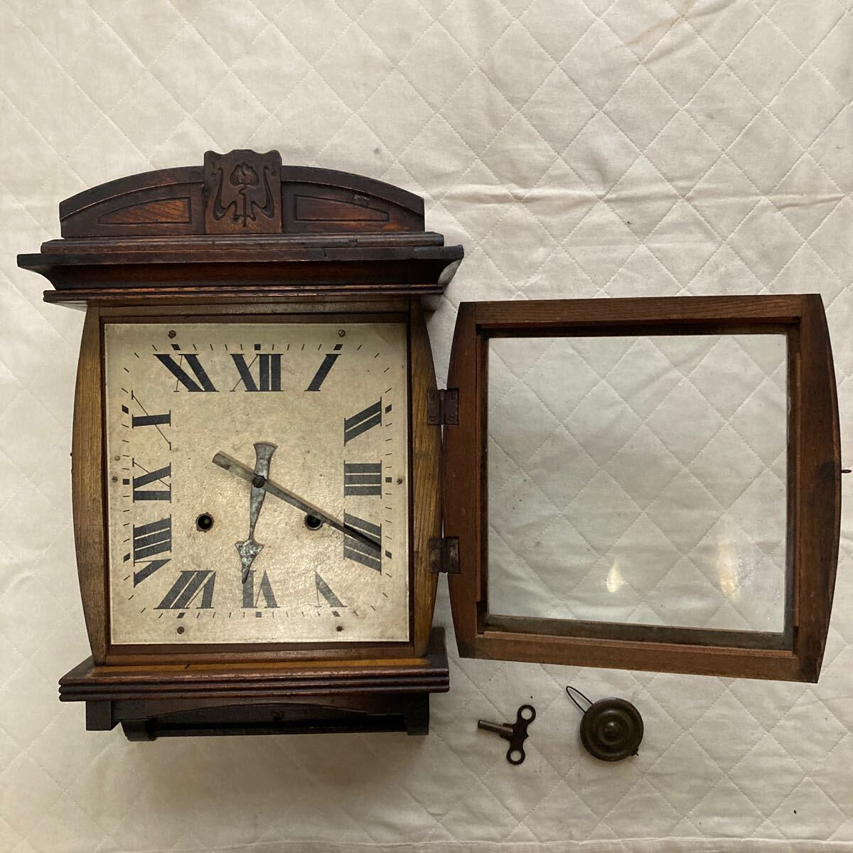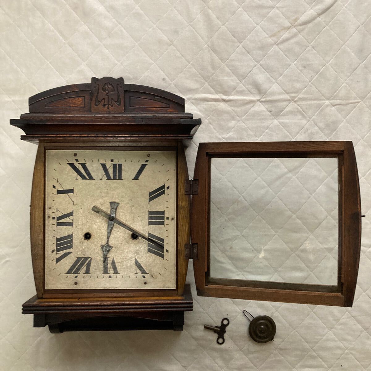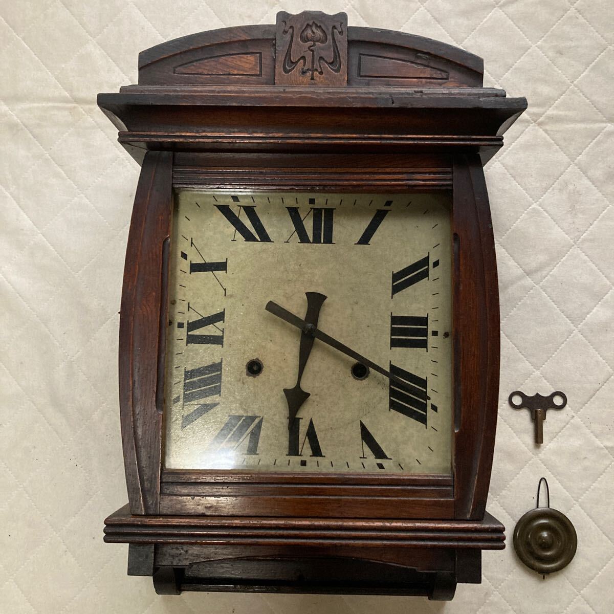 アンティーク.古い木製.柱時計.稼働品ですが時計の微調整は其方でお願い申し上げます.宜しくお願い申し上げます。