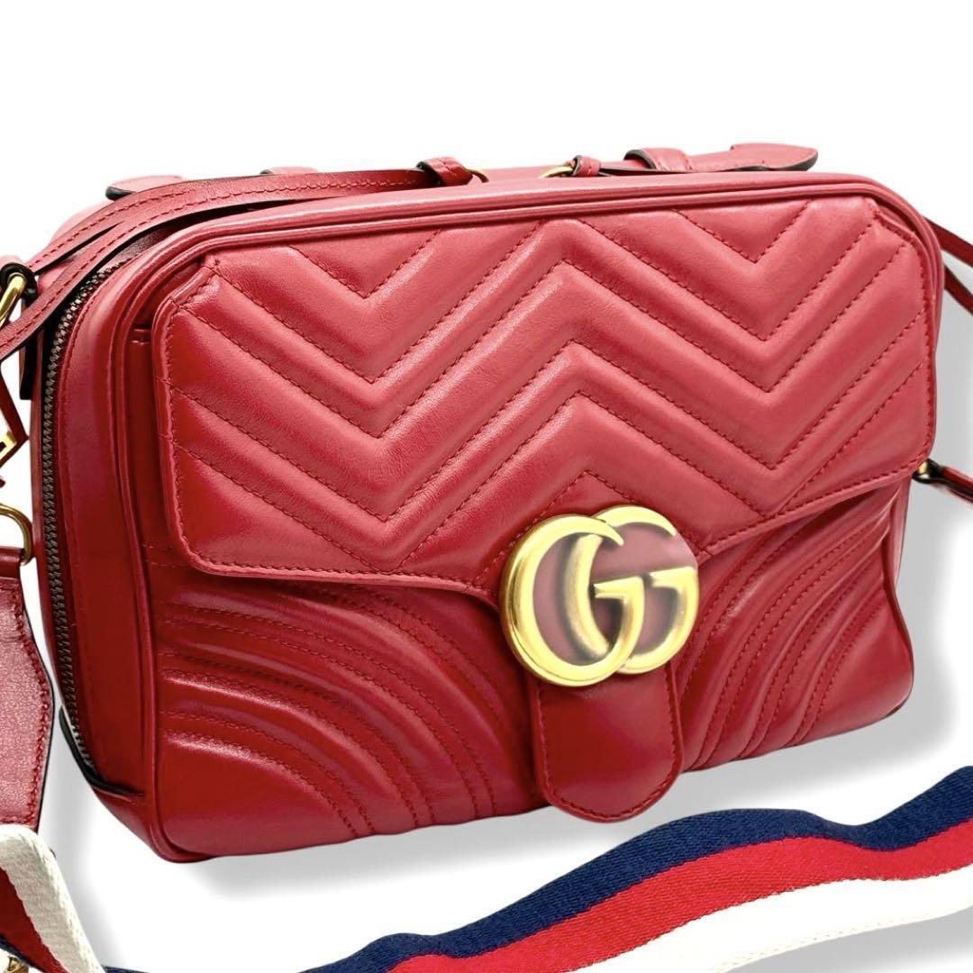 情熱的なレッドが目を引く、グッチならではのエレガントな2WAYショルダーバッグ。