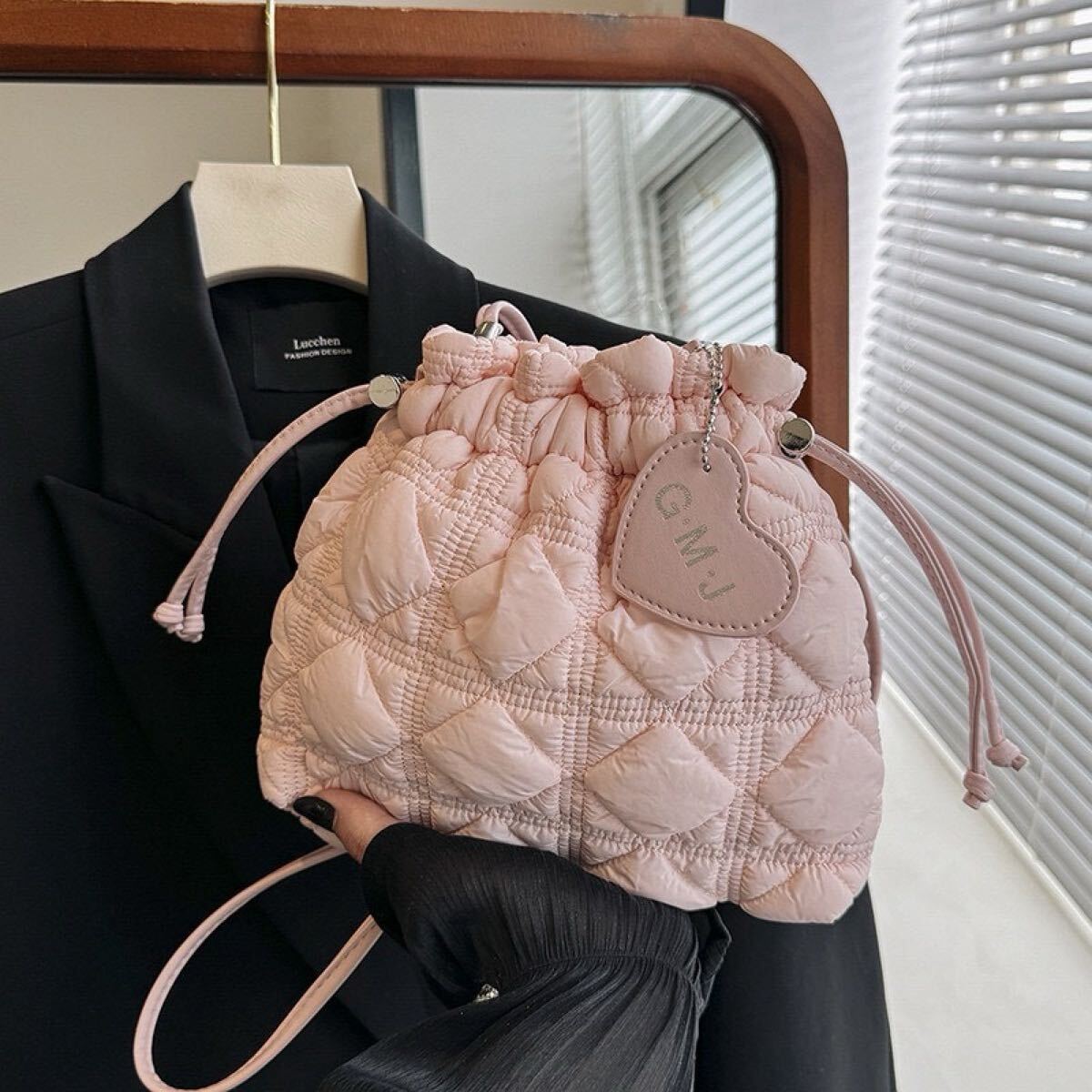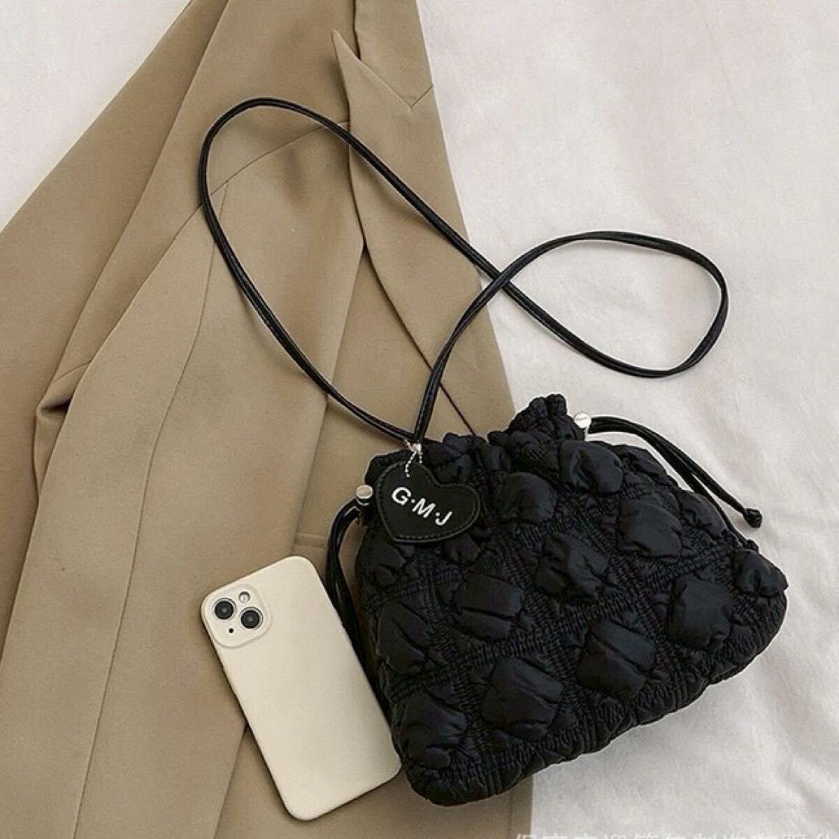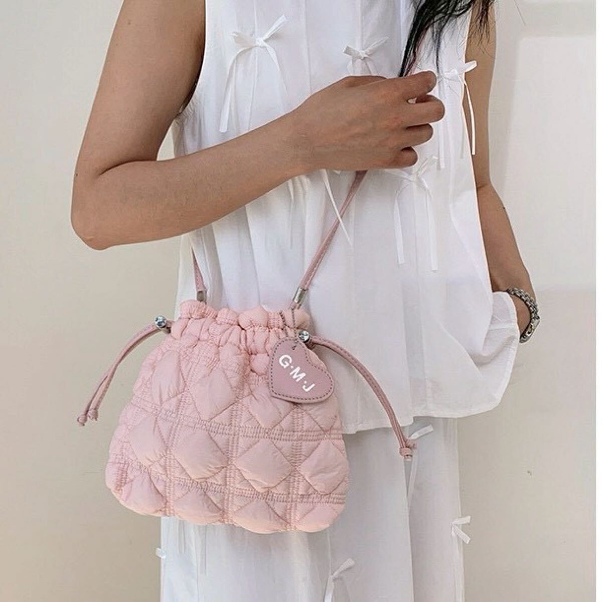 ダイヤ柄に型取った細かいステッチデザインとハートチャームがポイント!