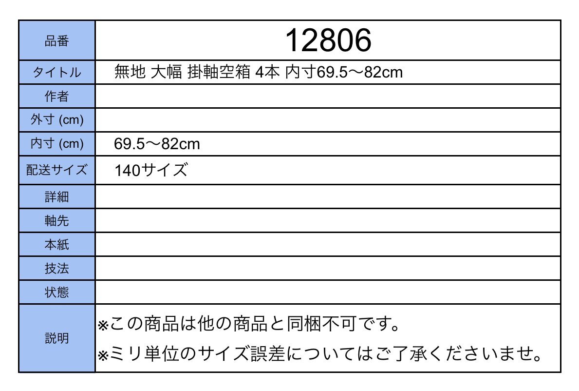 吉】12806 無地 大幅 掛軸空箱 4本 内寸69.5~82cm 時代箱 書画 中国画 茶掛け まとめて 保存 保管 掛軸 掛け軸 骨董品