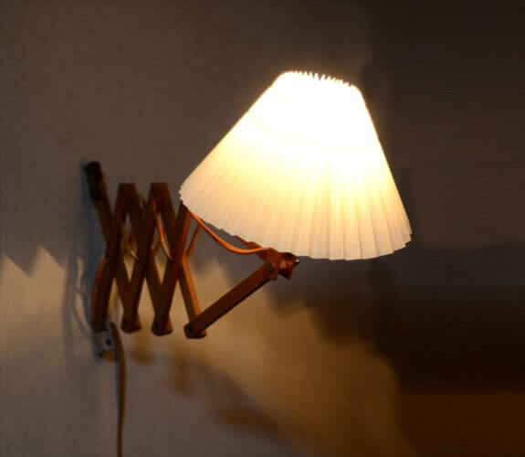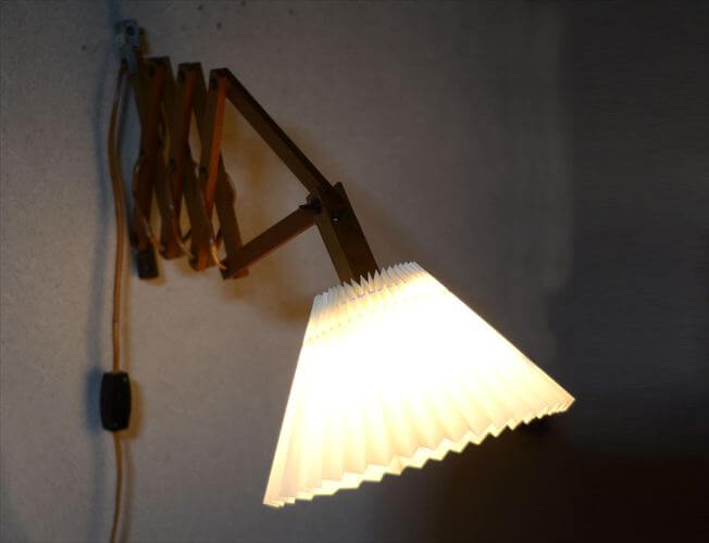 デンマークから 木製のシザーランプ シェード付き 壁付け 壁掛け ウォールライト 北欧照明 ヴィンテージ アンティーク il0119