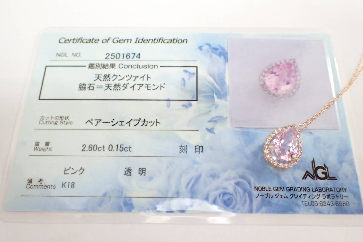 | 商品説明 | 27/美品 K18PG ピンクゴールド クンツァイト2.60ct ダイヤ計0.15ct ネックレス です。 |