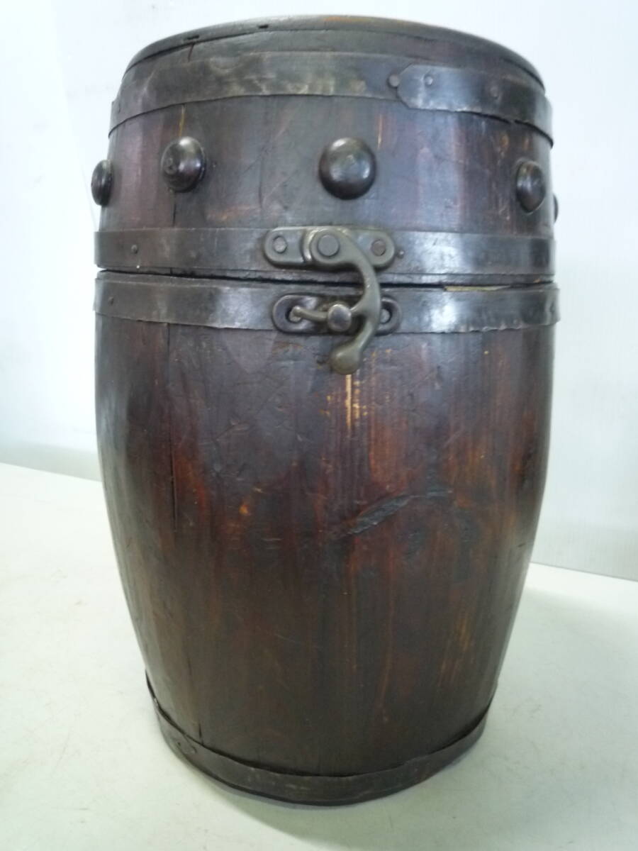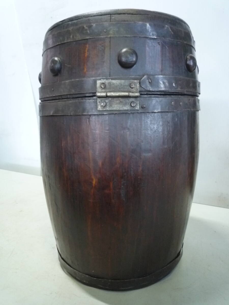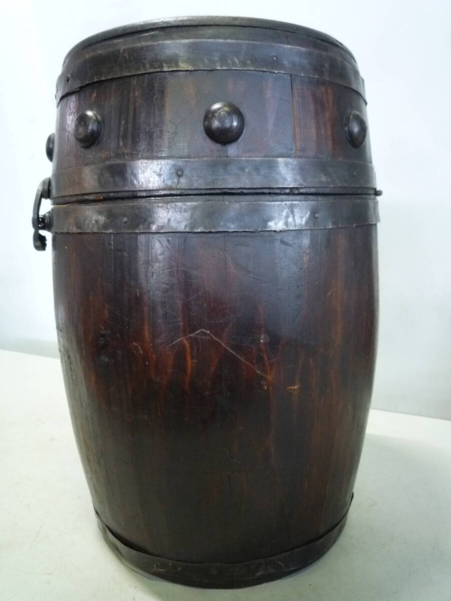 【7-7-7-4Ta★】 木製 樽 (約)高さ32cm×横21cm×奥行22㎝