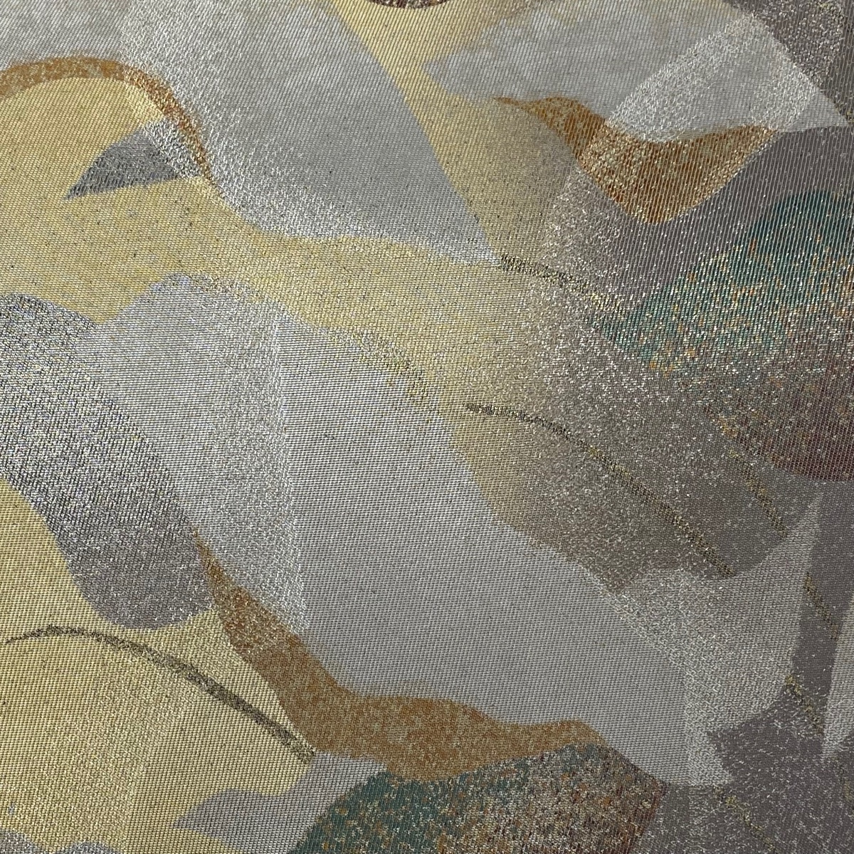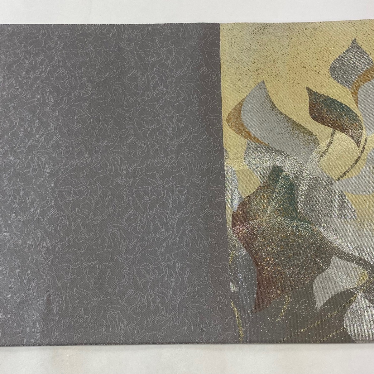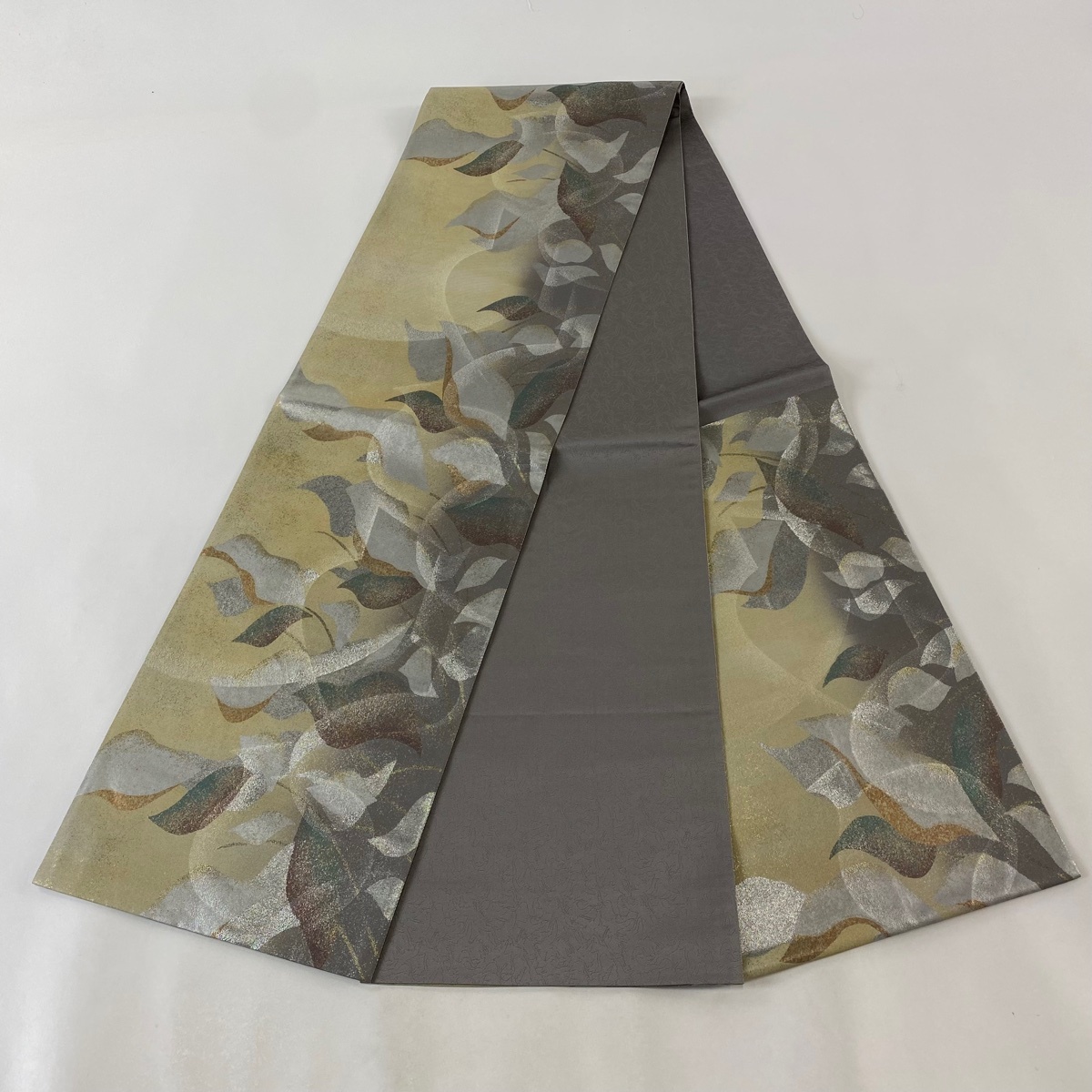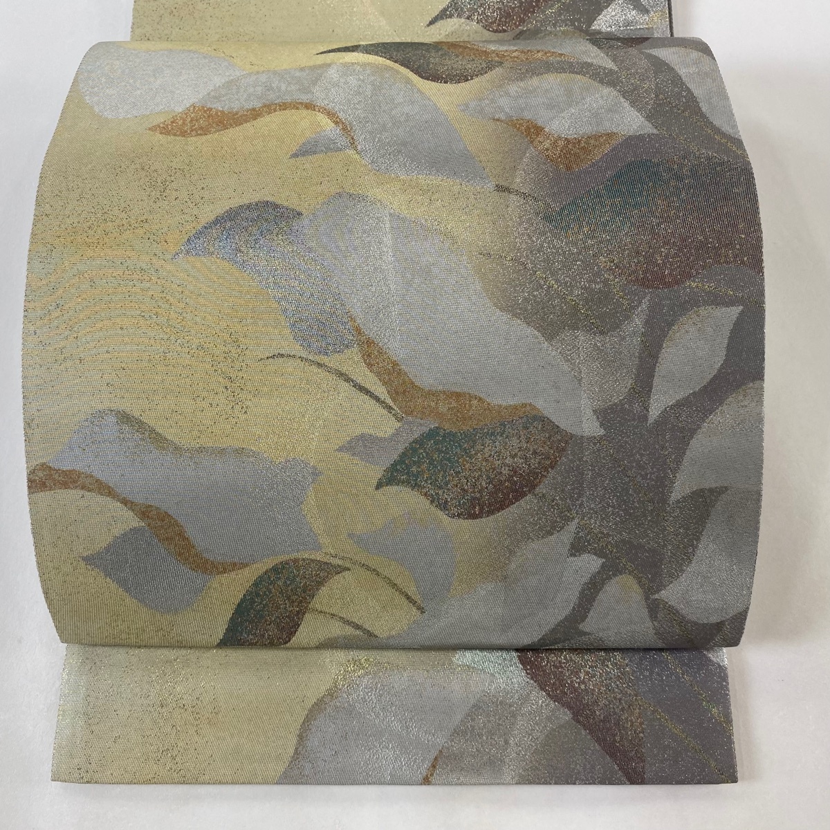 | 袋帯 美品 名品 葉柄 箔 薄茶色 六通 正絹 【中古】 |