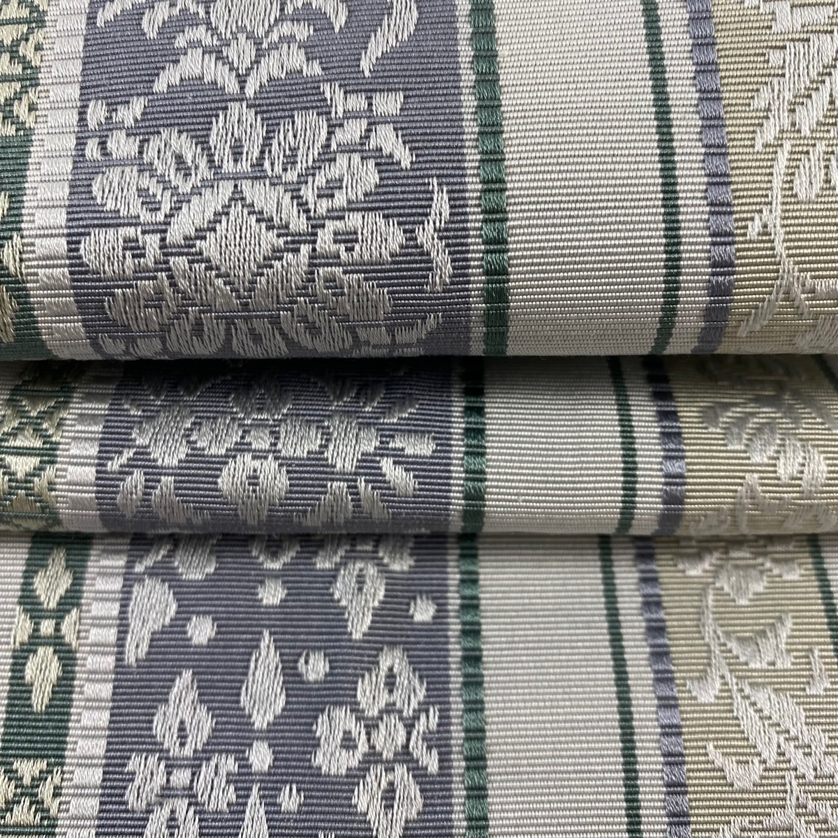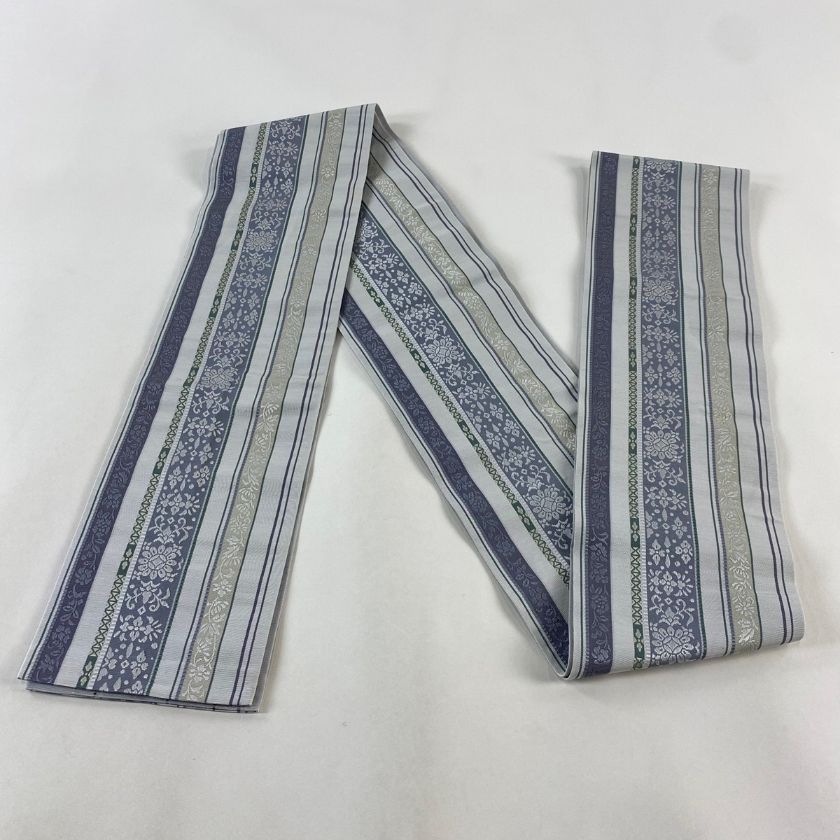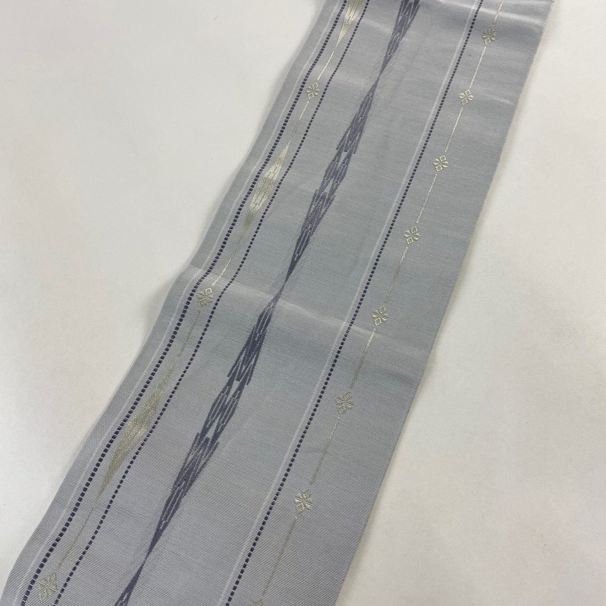 半幅帯 秀品 縞 草花 灰色 正絹 【中古】 |