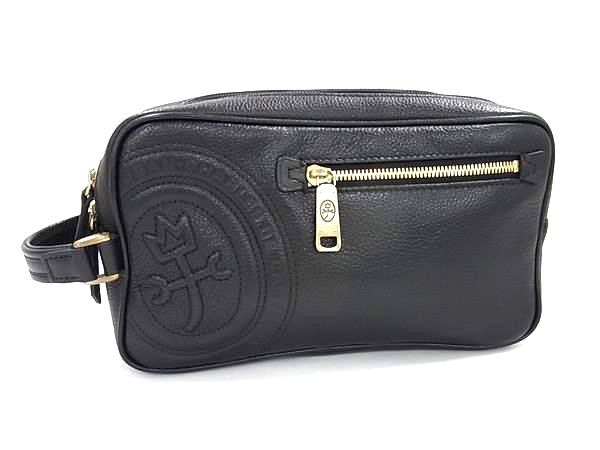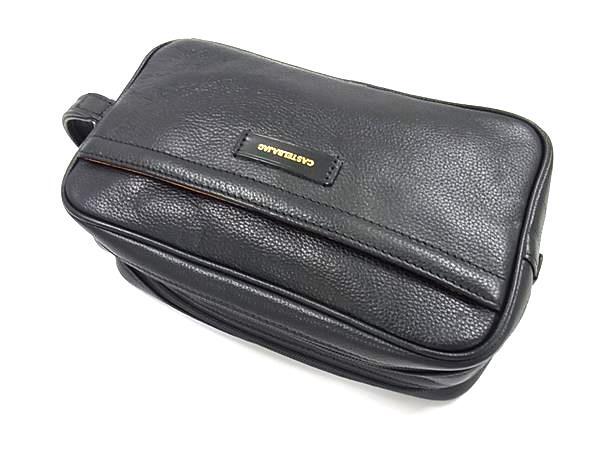 1円 ■美品■ CASTELBAJAC カステルバジャック レザー セカンドバッグ クラッチバッグ メンズ レディース ブラック系 FL9851