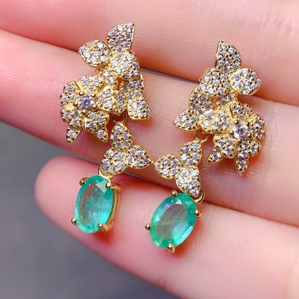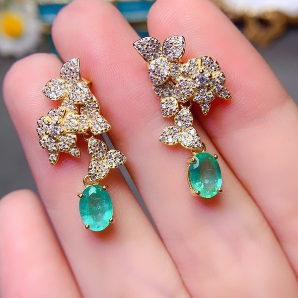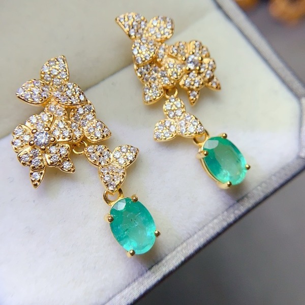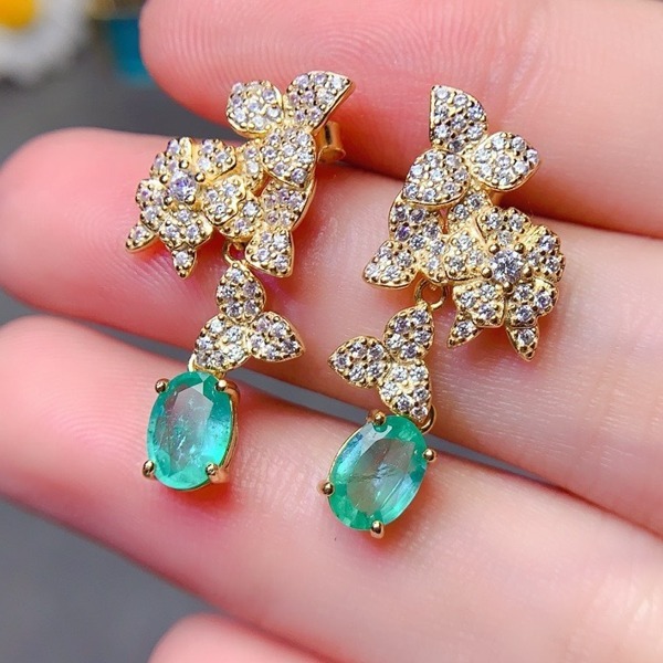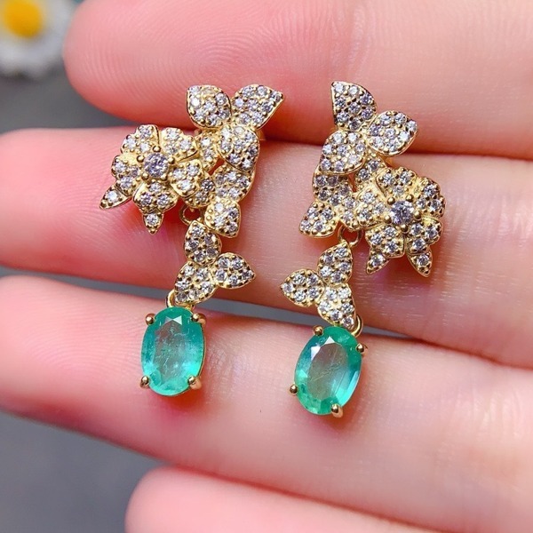 ゴージャスな天然エメラルドスタッドピアス、S925 スターリングシルバー、彼女の誕生日ホリデーのための素晴らしいギフト