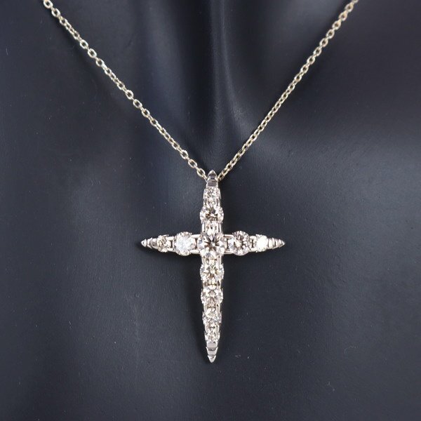Aランク【カシケイ】ネイキッド/ネックレス/ブラウンダイヤモンド/クロス/十字架/K18BG