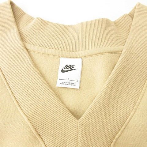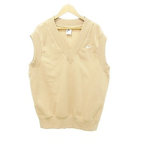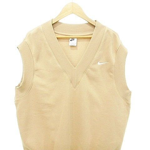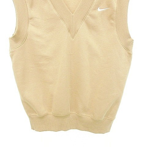 ナイキ NIKE 美品 裏起毛 ベスト Vネック スウィッシュマーク ワンポイント スウェット Lサイズ ベージュ メンズ