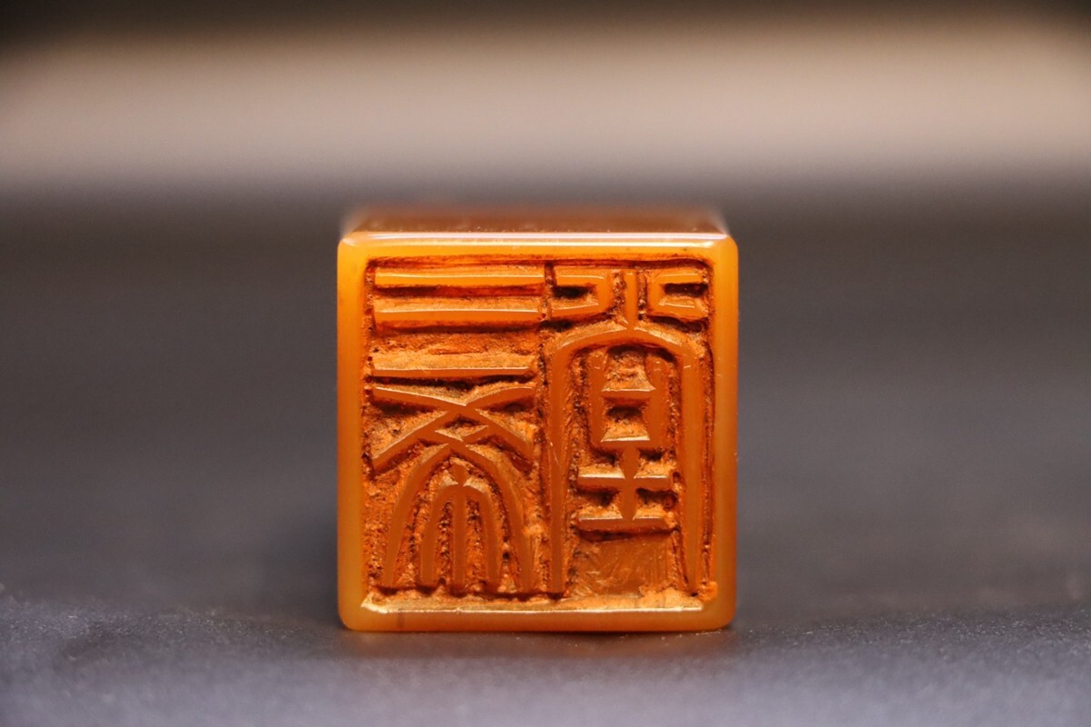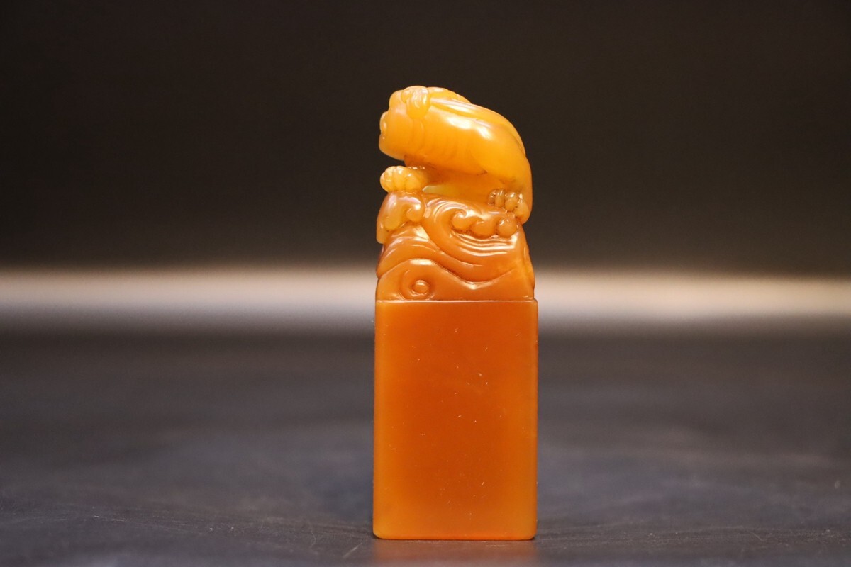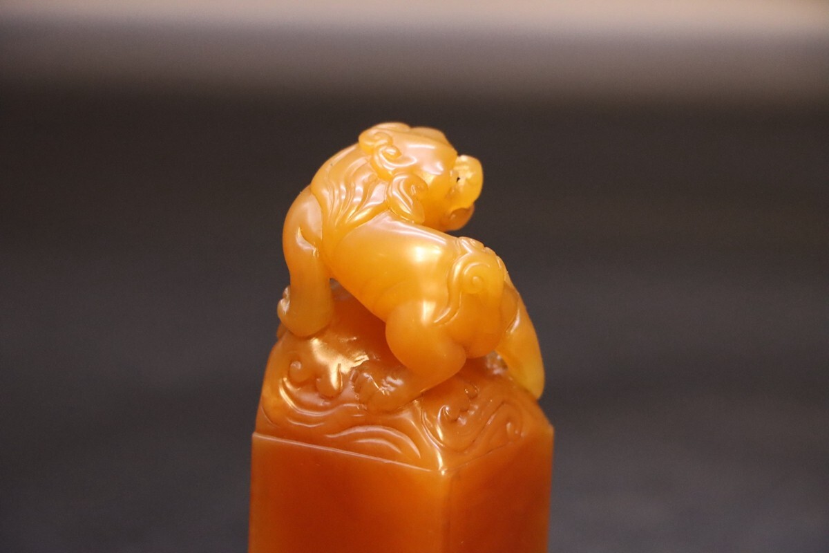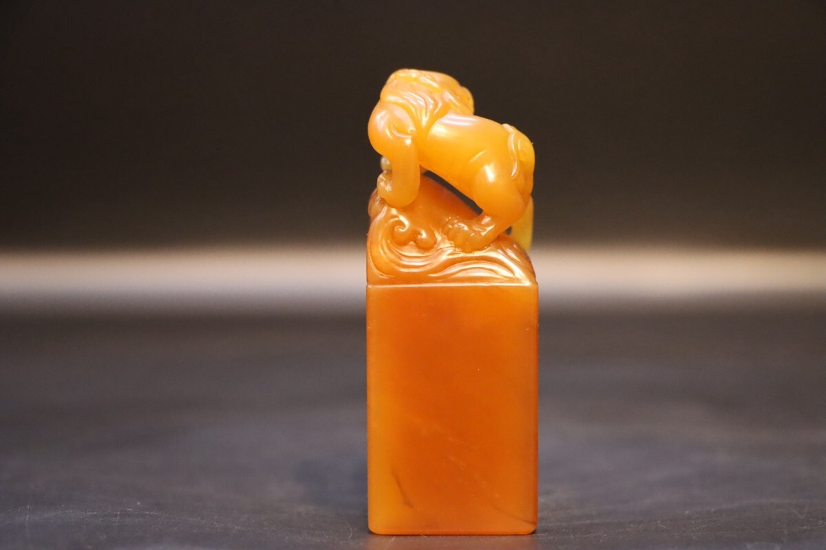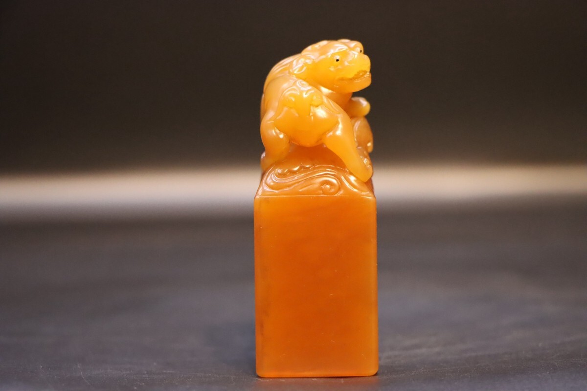 清代 乾隆十八年内務府造 老寿山石 田黄石彫 獣鈕印章【仁】極細工 手彫り 中国古賞物 古美術 蔵出