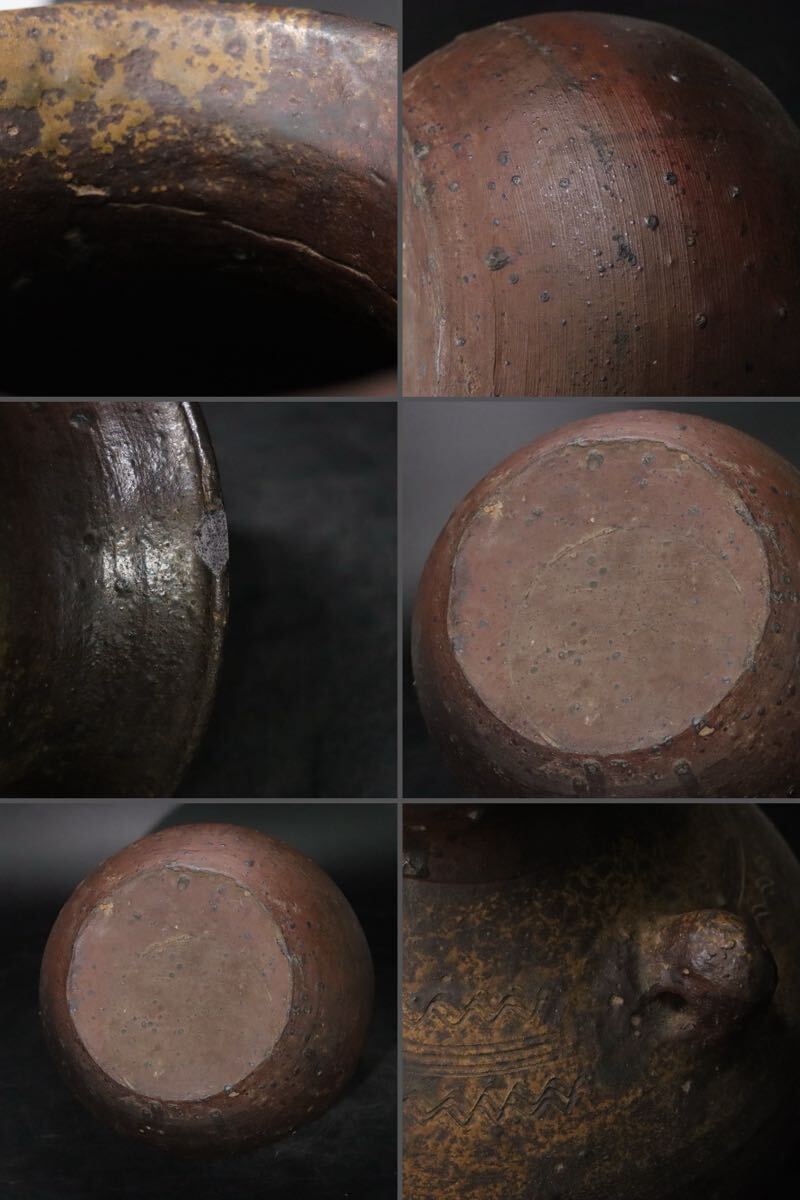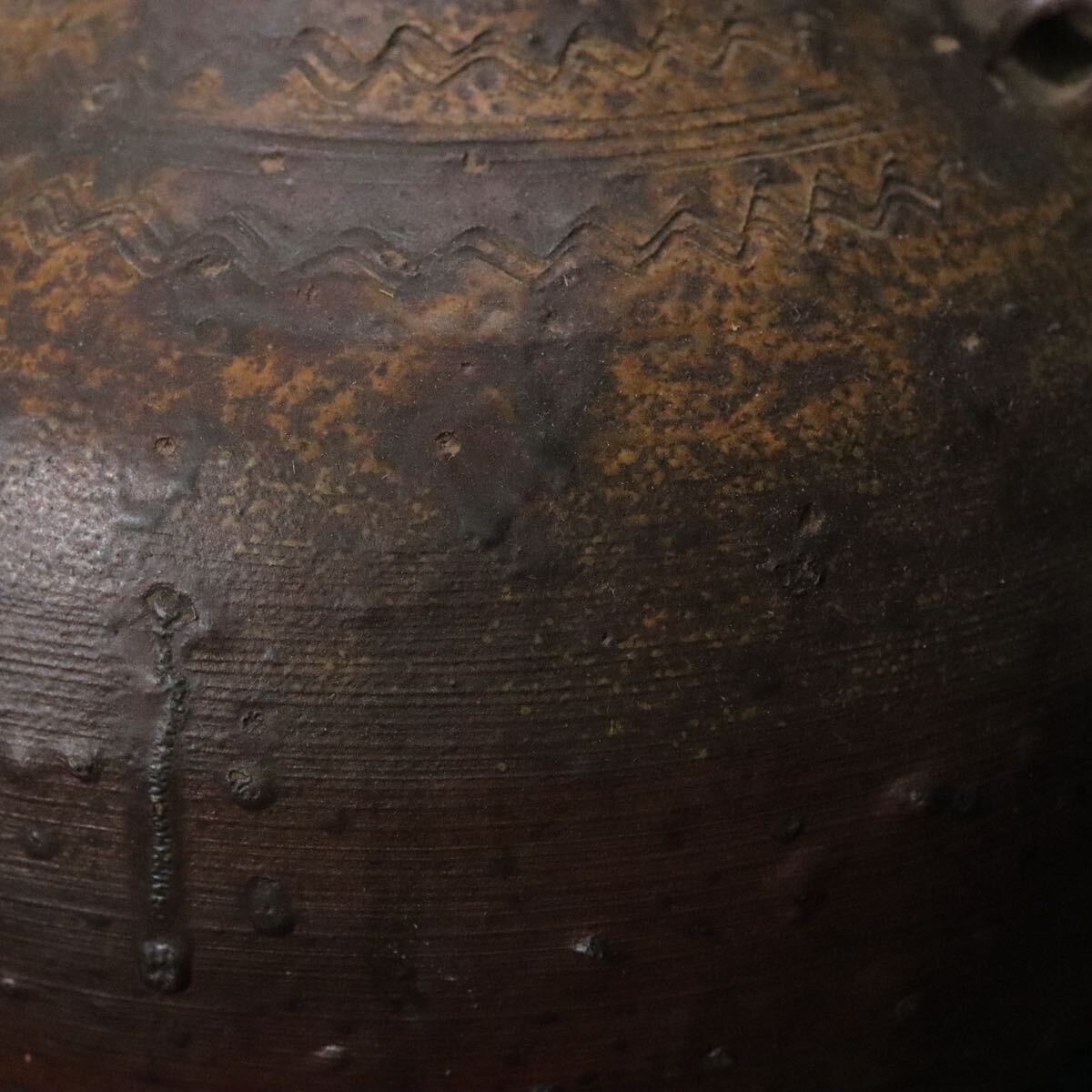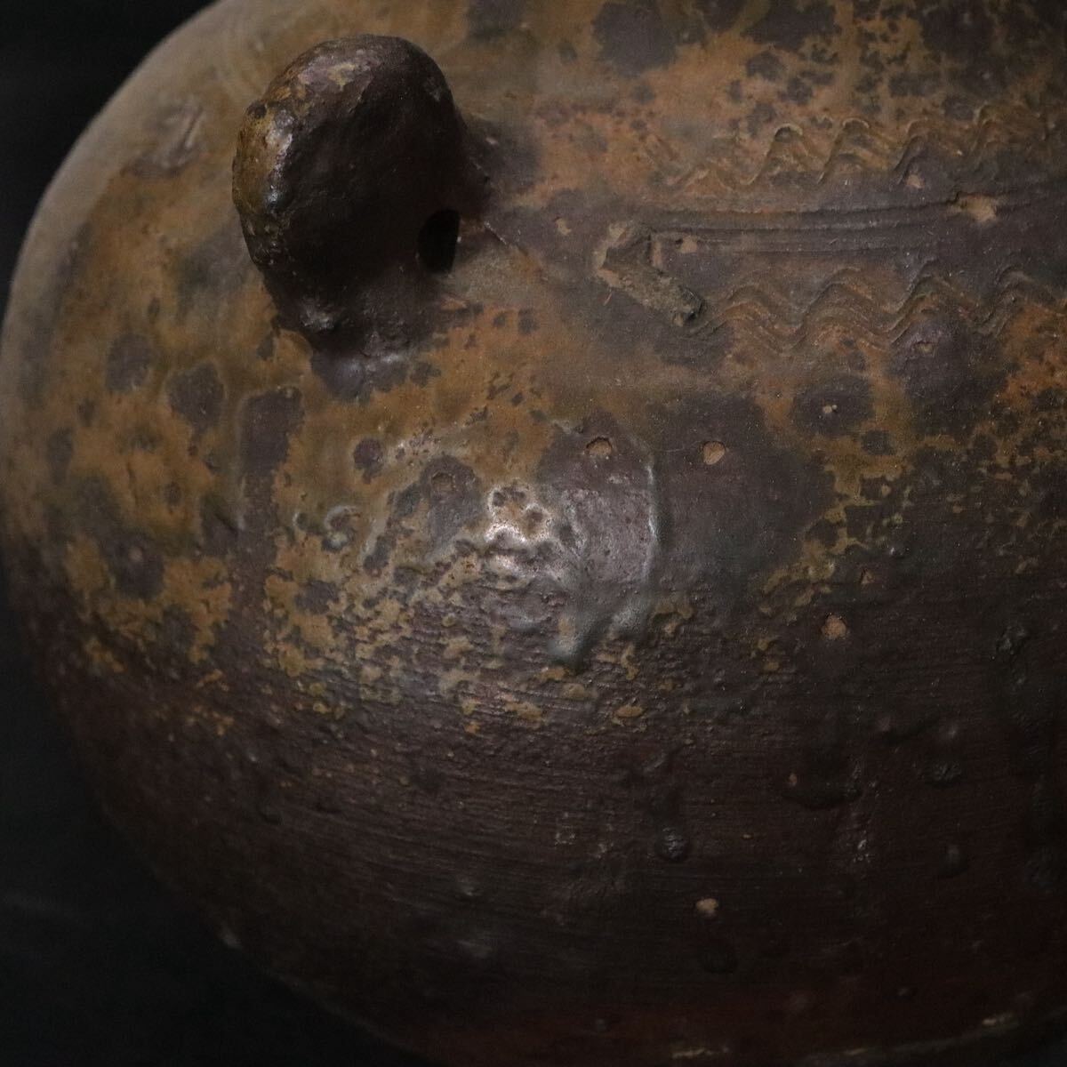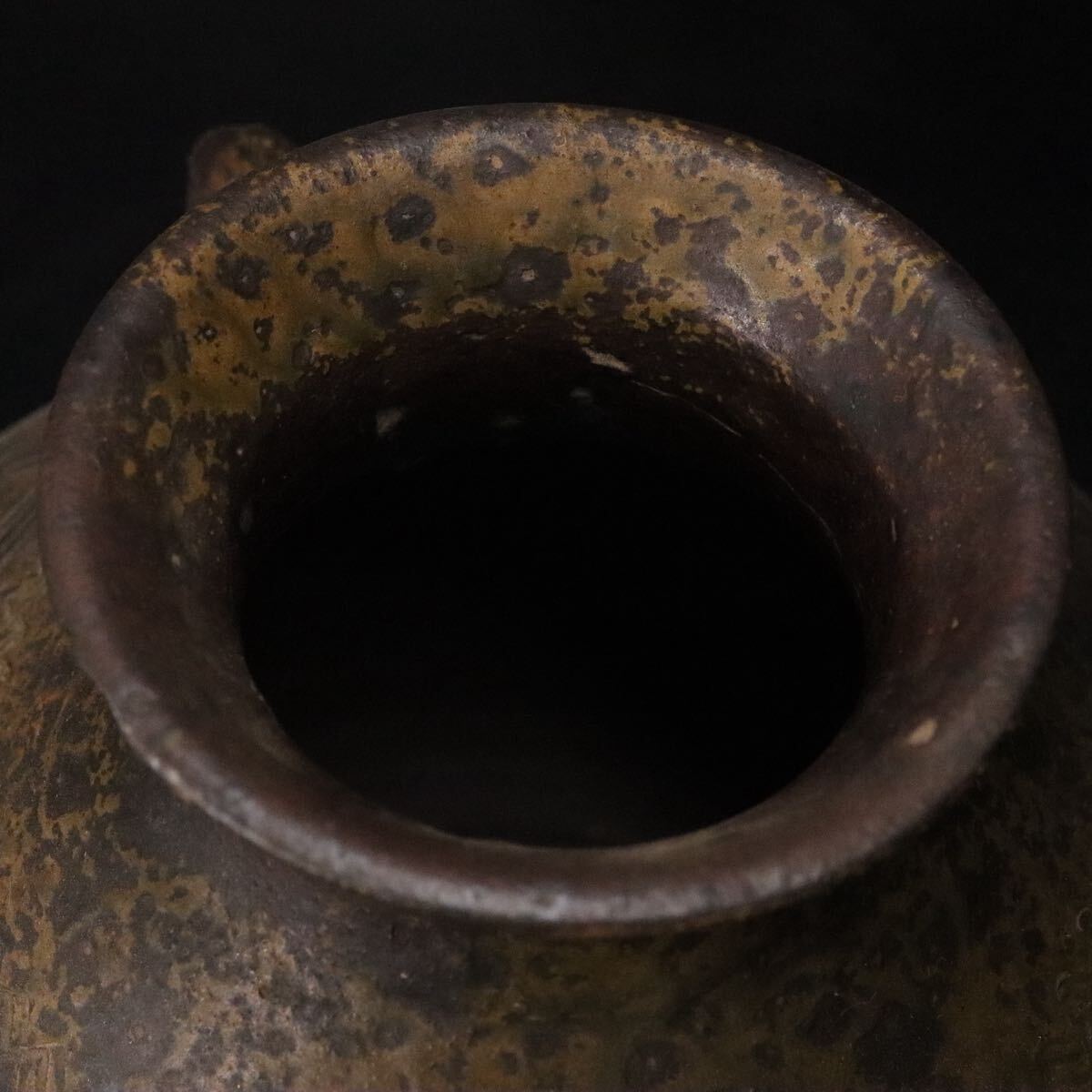 | 桂又三郎 識 「 琉球 南蛮 二耳 壺 江戸中期之作 」 識箱付 共箱 / 琉球焼 壺屋焼 南蛮 南蛮手 煎茶道具 花瓶 .B947 |