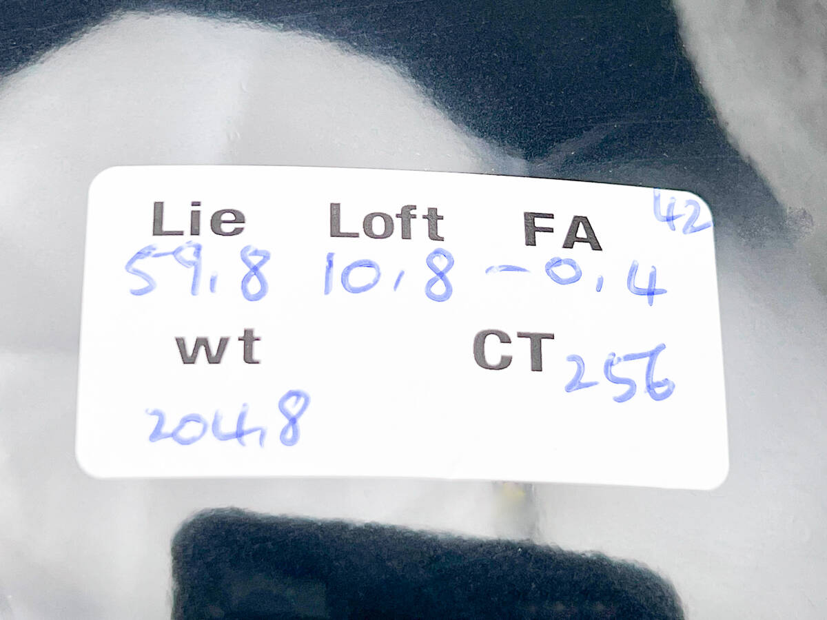 CT値 256 ロフト10.5 表記(リアルロフト 10.8°) ライ角 59.8° F.A(フェースアングル)0.4° CLOSED(ほんの少し左向き、ほぼスクエア)