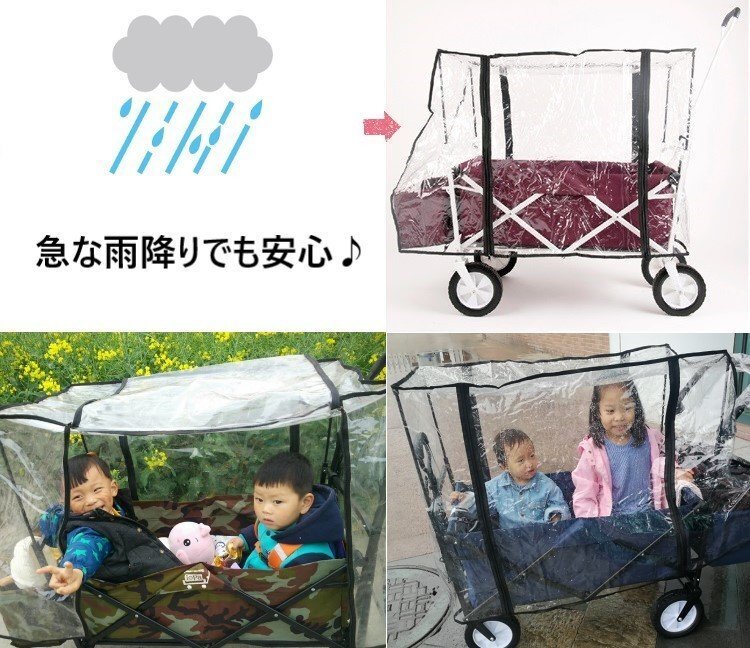 雨の侵入を防ぐ! キャリーカート専用 レインカバー 雨よけ 傘 子供 ペット アウトドアワゴンの優秀オプション♪