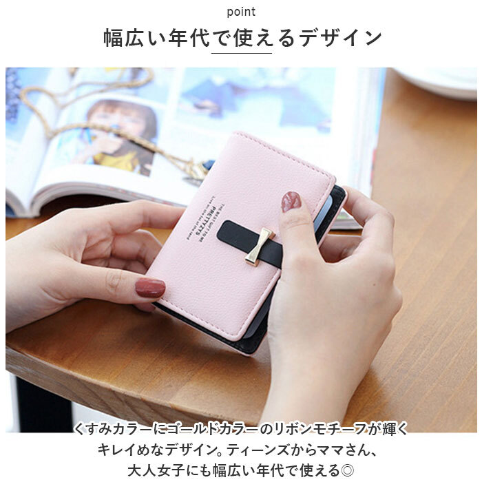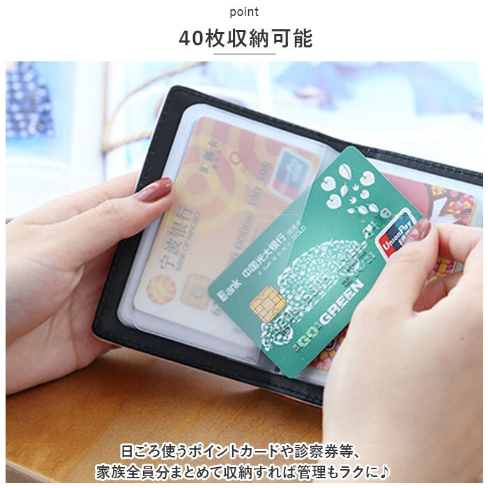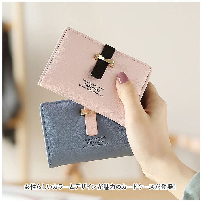 商品説明 | ・・女性らしいカラーとデザインが魅力のカードケースが登場! ・【沢山収納OK!】 ・半透明のクリアポケットでカードは40枚収納可能。日ごろ使うポイントカードや診察券等、家族全員分まとめて収納すれば管理もラクに♪ ・【開閉ラクラク】 ・フラップベルトはカードの枚数に合わせてサイズの調節も可能。 ・【PUレザー】 ・お手入れしやすいPUレザー生地を採用。 ・【幅広い年代で使えるデザイン】 ・くすみカラーにゴールドカラーのリボンモチーフが輝くキレイめなデザイン。 ・ティーンズからママさん、大人女子にも幅広い年代で使える◎ |
