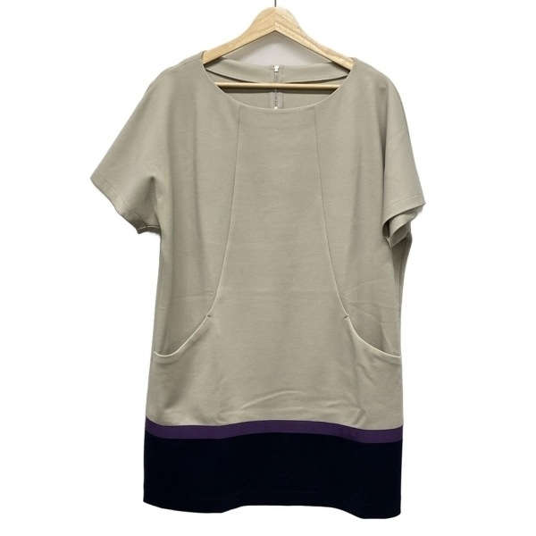 レリアン Leilian チュニック サイズ11 M - グレー×黒×パープル レディース 半袖/ファスナー開き/ウール混 ワンピース