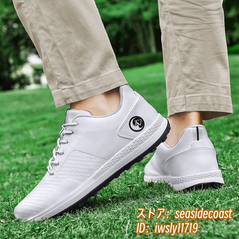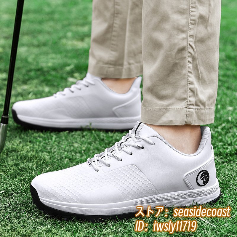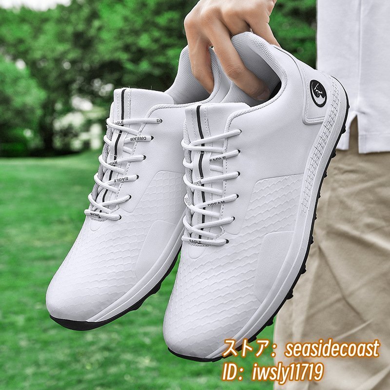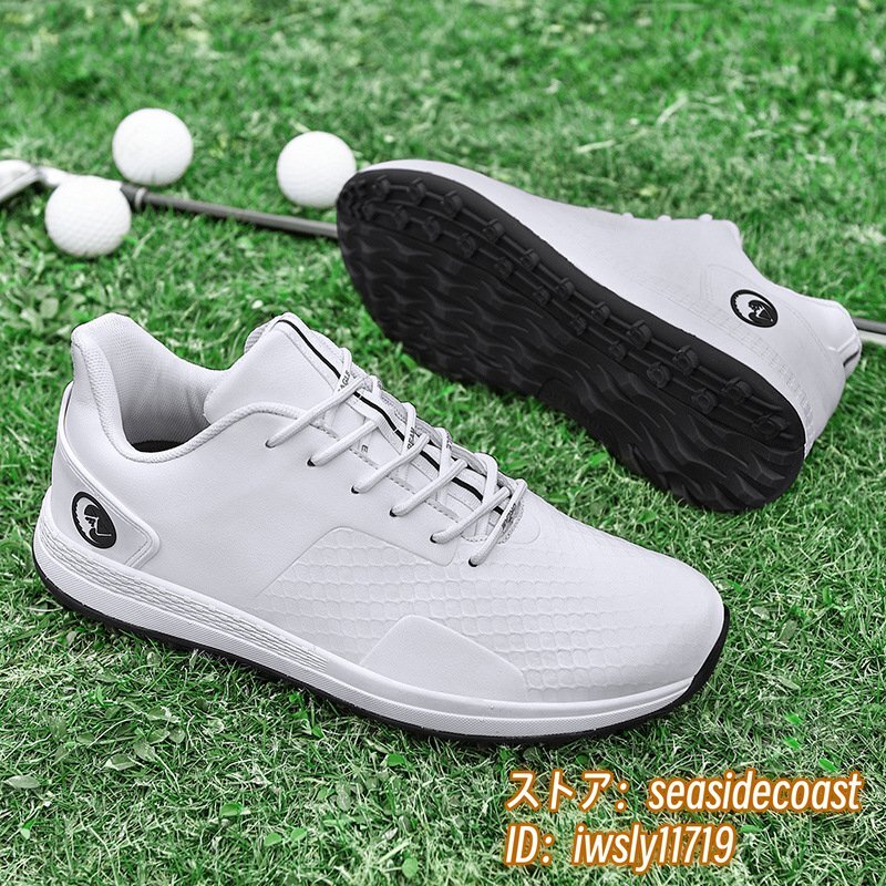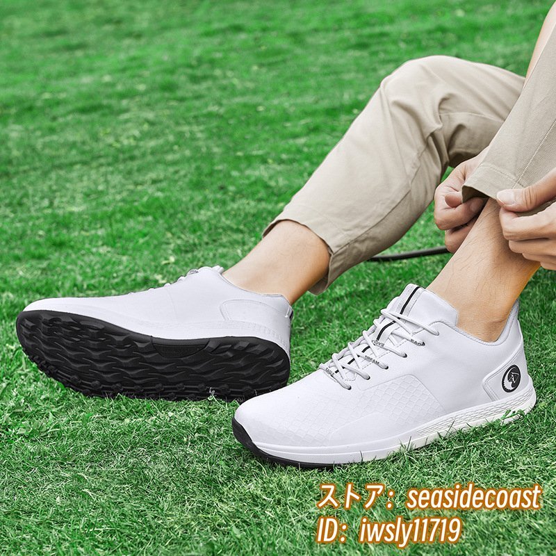 新品特売 ゴルフシューズ スニーカー メンズ スポーツシューズ デニス 運動靴 ウォーキングシューズ 軽量 防水 防滑 耐磨 ホワイト 28.0cm