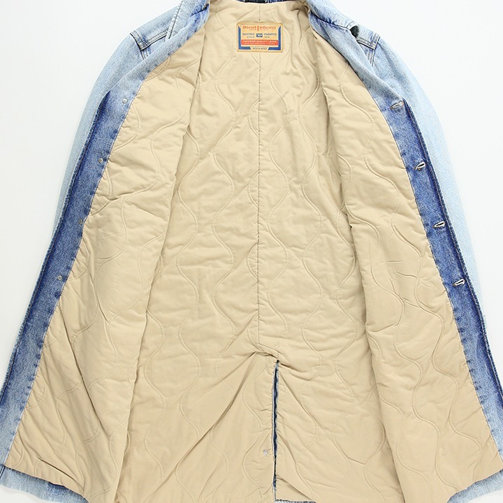 | 【平置き実寸サイズ】※単位cm 【XL】(XXL相当)肩幅53 身幅64 袖丈64 着丈110 【素材】コットン(綿)100% 裏地:ポリエステル65% コットン(綿)35% 中綿:ポリエステル100% 【生産国】ITALY 【仕様】 ・センターベント部分にボタンあり | ![]() |