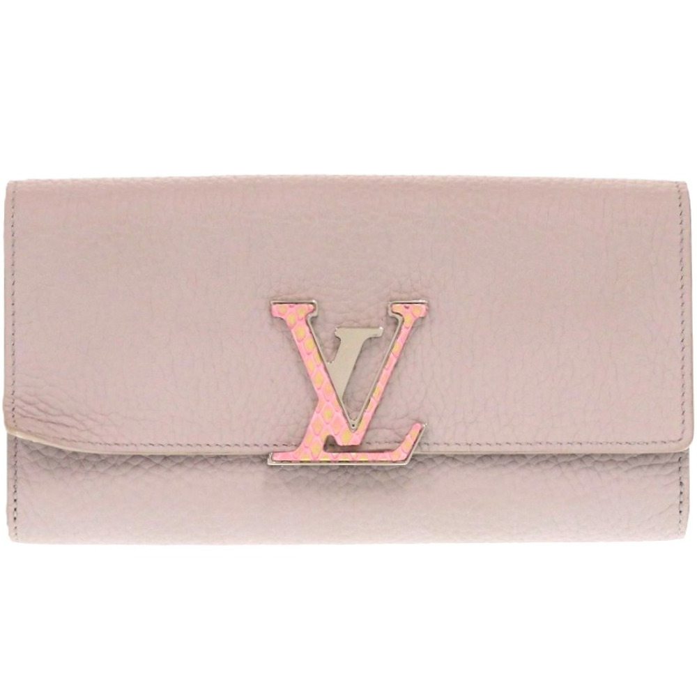 新品同様 ルイ ヴィトン ポルトフォイユ カプシーヌ N87625 レザー パイソン トリヨン ブルームグレー ICタグ 長財布 0460 LOUIS VUITTON