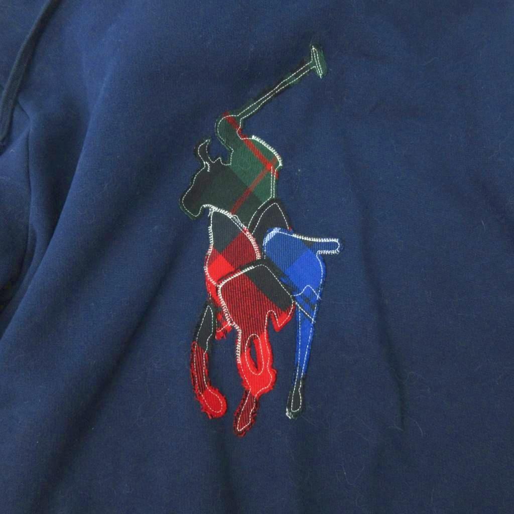 ポロ ラルフローレン POLO RALPH LAUREN 美品 近年 プルオーバー パーカー フーディ 裏起毛 ポニー パッチワーク S 紺 ネイビー