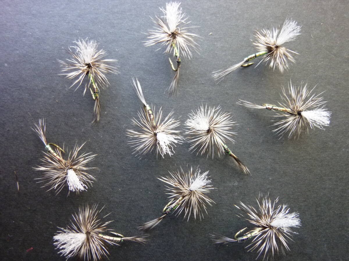 ボディ:フラッシャブー(パール) テール:ハックルファイバー(グリズリー) ソラックス:スーパーファインダビング(ブラック) | ||||||||